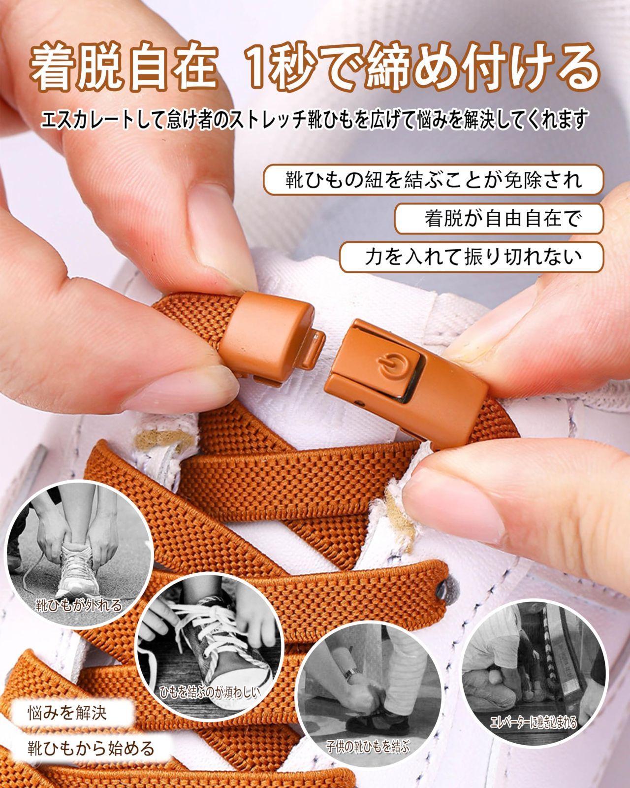 [DOMATUS] 結ばない靴紐 バックル付き ワンタッチ式仕様 結ばない靴ひも ワンタッチ靴紐 くつひも 結ばない 結び目隠し 金属製紐止め金具 靴ひも 子供も大人も使用できる