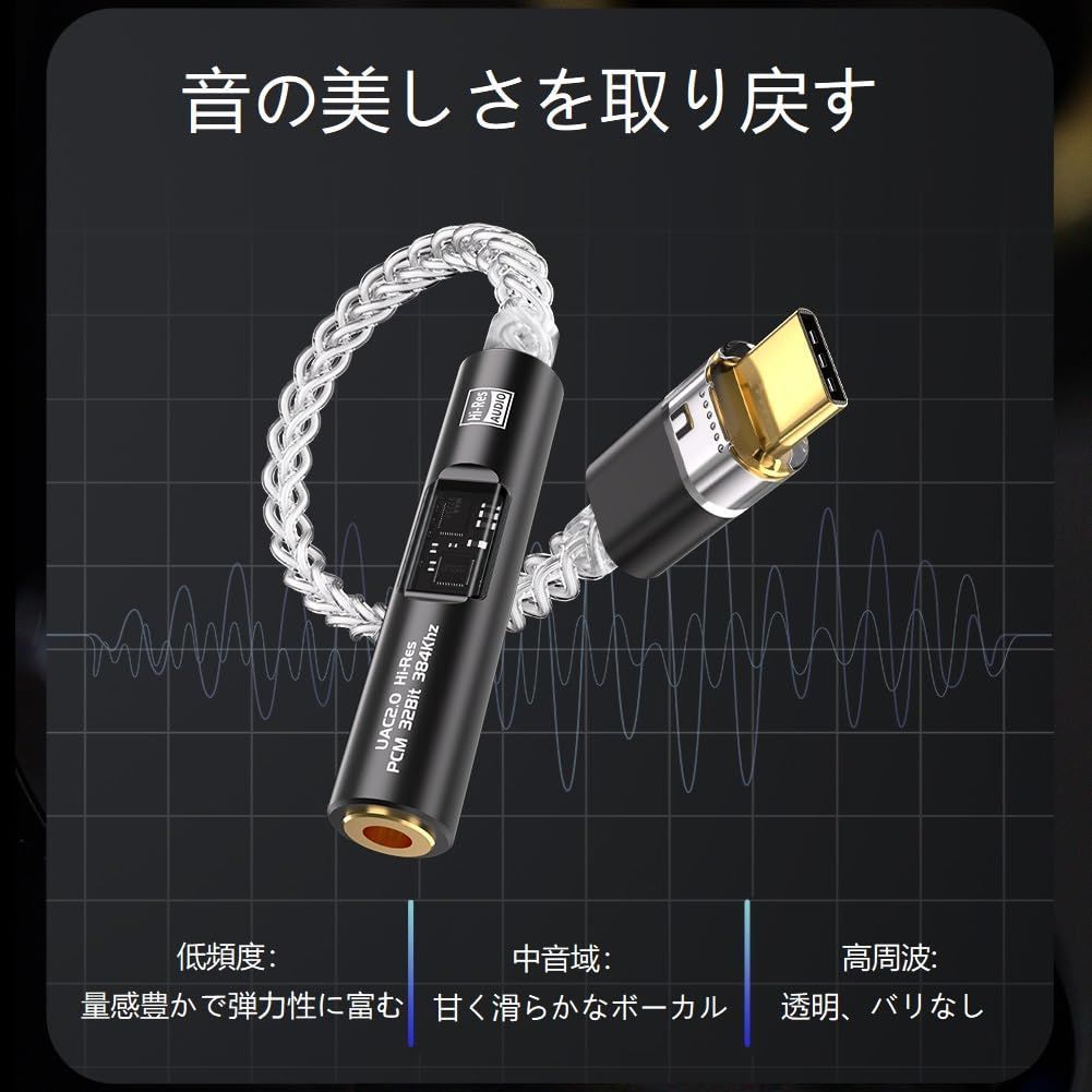 【先進的Hi-Fi DAC】高ダイナミックレンジの出力、最小の歪みで最大32bit/384kHz PCM Hi-Res 対応 DACチップを搭載しています。家庭、事務室、ゲーム、どんな場面でも高解像度サウンドをお楽しみいただけます。