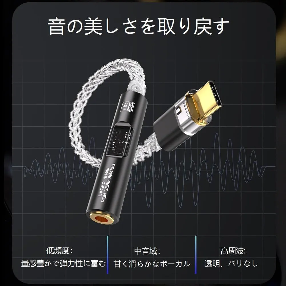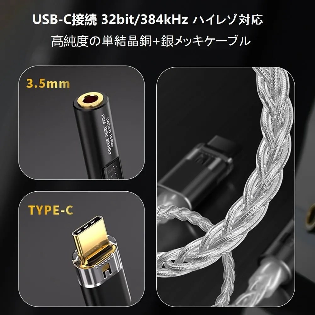 【在庫処分】DAC DAC ハイレゾ アンプ 小型 3.5mm iphone17/16/15シリーズ/ 対応) 32bit/384kHz Type-C PCM / スマートフォン/パソコン/タブレット (24bit/96kHz ヘッドホンアンプ 使用可能 US