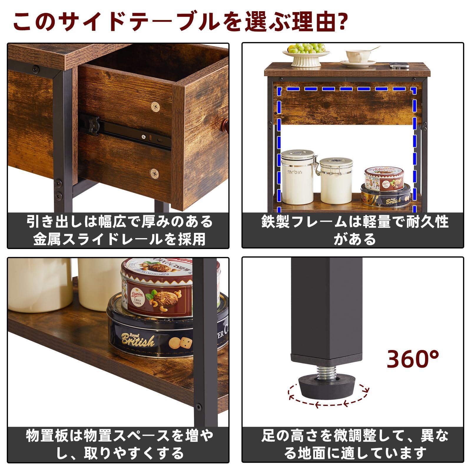 多機能サイドテーブル: 見た目も良く、機能も完璧です。リビングルームにサイドテーブル、エンドテーブル、または小さなコーヒーテーブルとして置くことができます。もちろん、このテーブルを寝室のベッドサイドテーブルとして置くこともできます、これも良い選択です