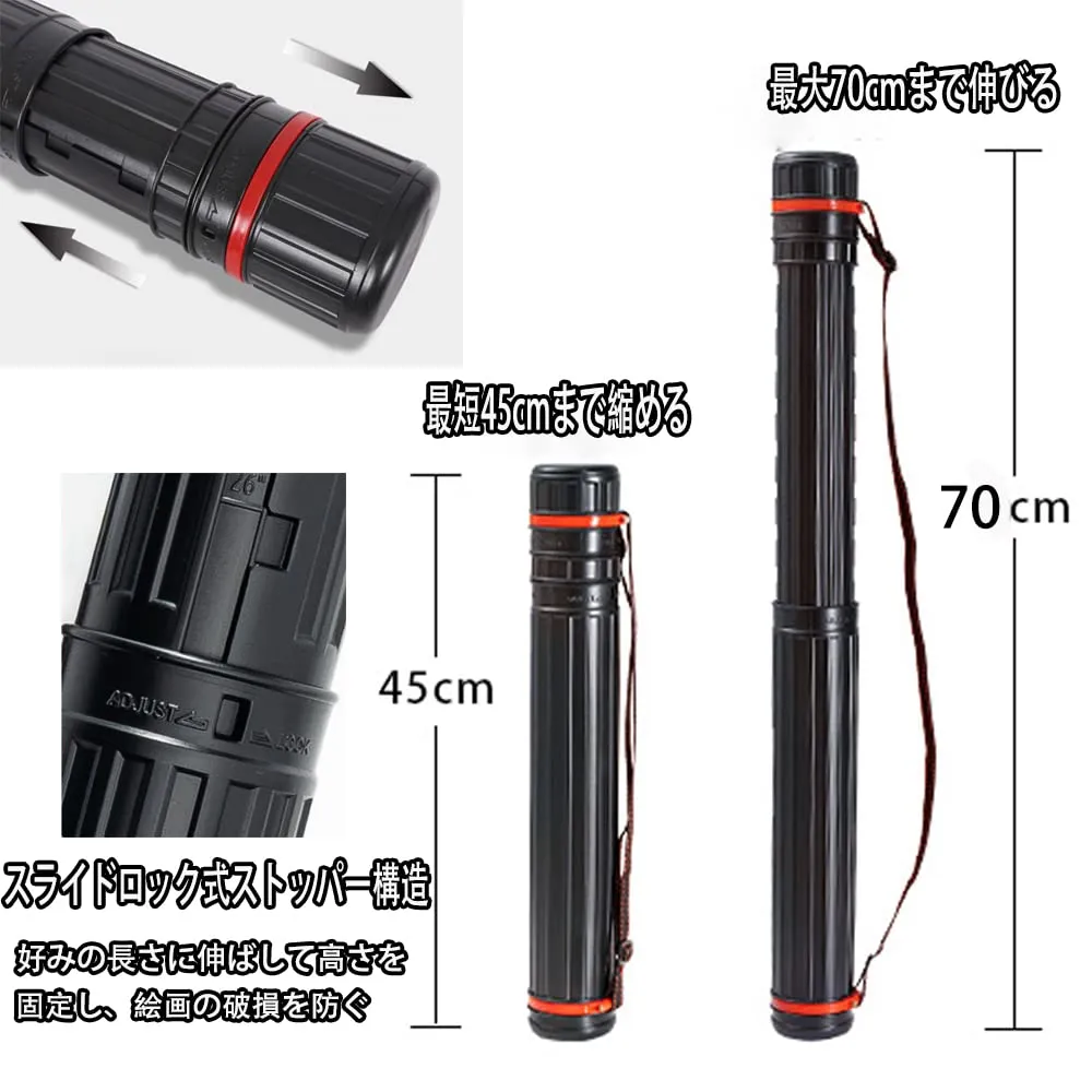 【高い保護性能】1.防水防塵、.雨の日でも使える。2.スライドロック式ストッパー構造,好みの長さに伸ばして高さを,固定し、絵画の破損を防ぐ。3.持ち運び,移動に便利なショルダーベルト付。