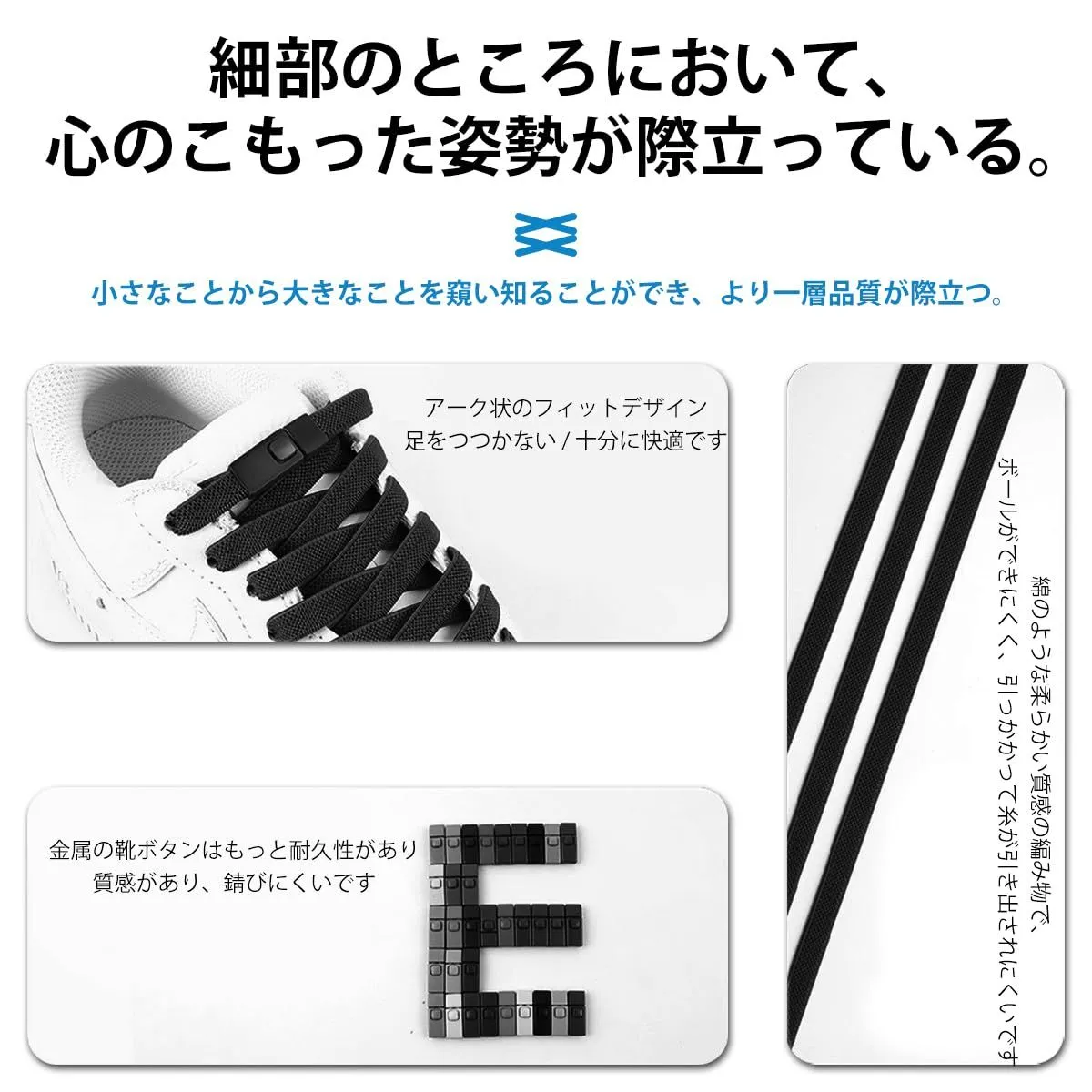 [FFTQTOYS] 靴紐 結ばない シューレース ノット 結ばない 子供と大人用 ゴム 伸縮性のある靴ひも靴紐 ゴム 靴紐 スニーカー 忙しい人 子供 高齢者 運動能力が制限されている人のために 靴ひものバックルを結ぶ必要はありません