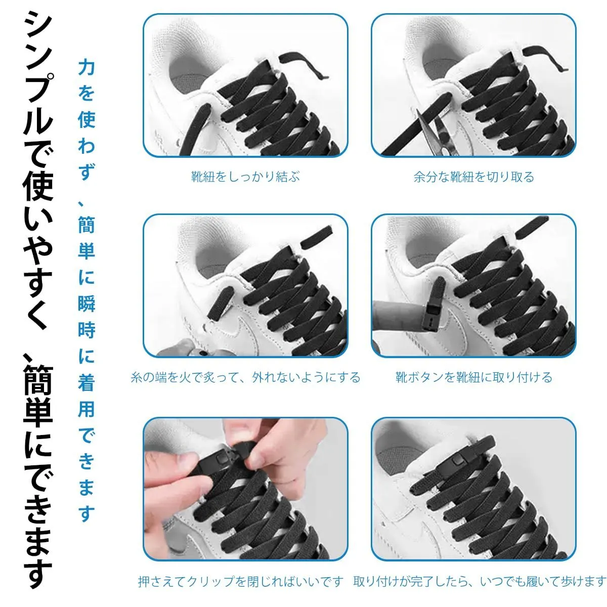 【時間節約と効率】従来の靴ひもは何度も締めたり緩めたりする必要がありますが、紐のない靴ひもは靴を「履いたり脱いだり」するモードに変えることができ、靴を履く時間を大幅に短縮します。特に忙しいオフィスワーカーや学生に適しています。一度取り付ければ、適切な締め付け感を保つために毎日靴を調整する必要はありません。特に、障がい者、高齢者、子供、妊婦などの方におすすめです。靴ひもがほどけない、結び方が分からない、靴の脱ぎ履きが難しいなどのお悩みをこの結ばない靴ひもが解決します! 最後までご確認頂き誠にありがとうございました。 上記をご確認頂き、ご購入いただけましたら幸いです。 何かご不明な点がございましたらお気軽にメッセージからお問い合わせ下さい。