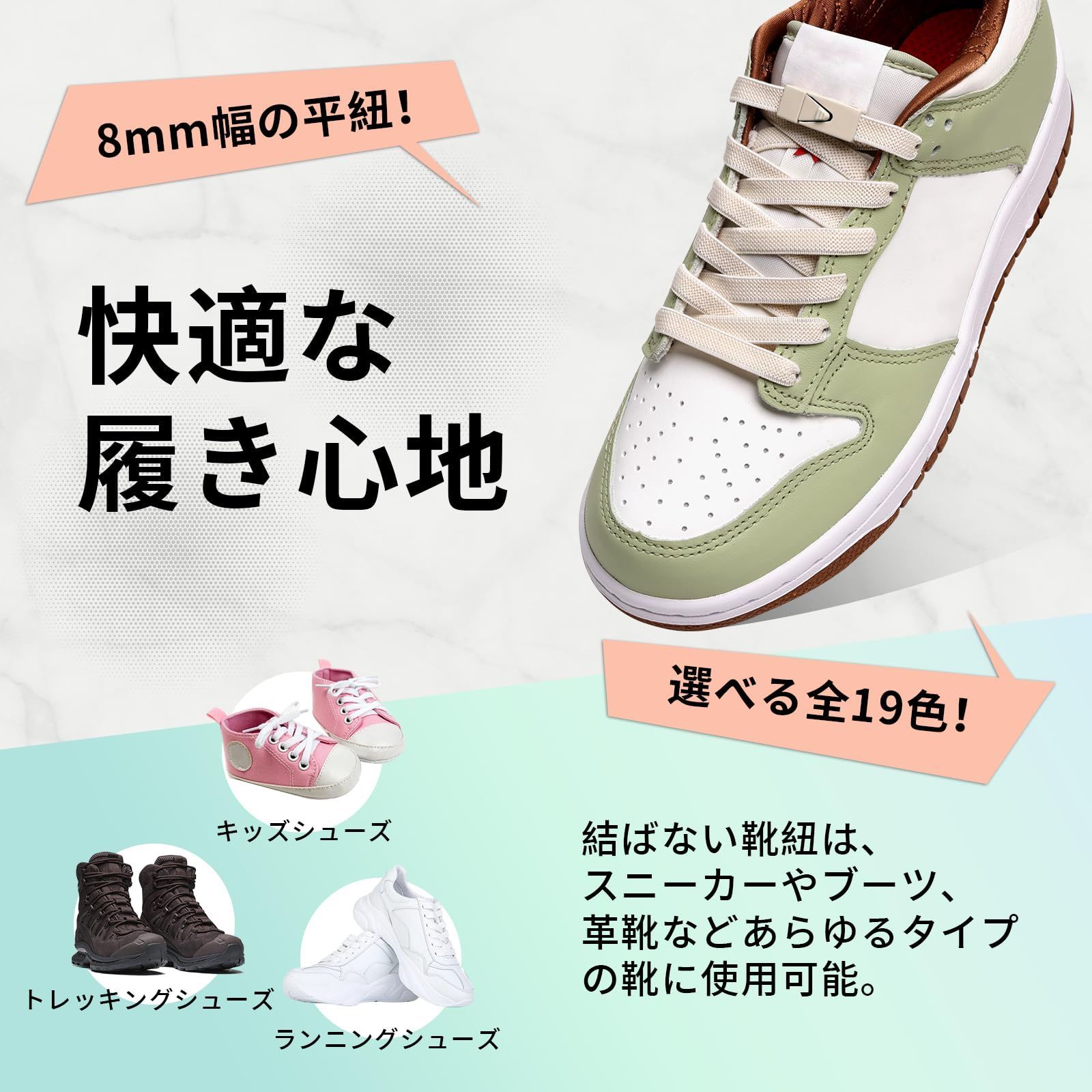 【数量限定】結ばない靴紐 ゴム紐 平紐 靴ひも 伸びる靴紐 ほどけない 簡単取り付け スニーカー [Tadong] 子供 大人 高齢者【2025新登場・19色】1足分