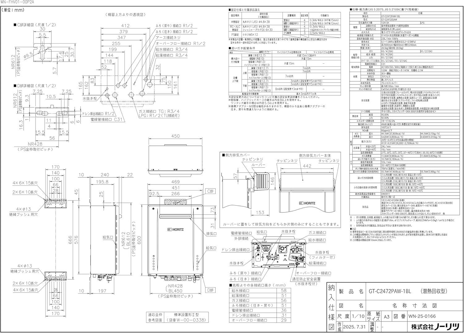 24号 GT-C2472PAW-1 BL ノーリツ (プレミアム) 都市ガス用 屋外壁掛形 エコジョーズ