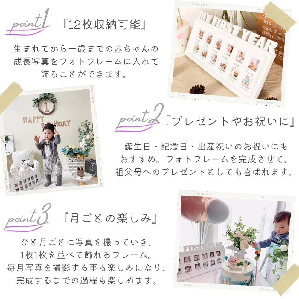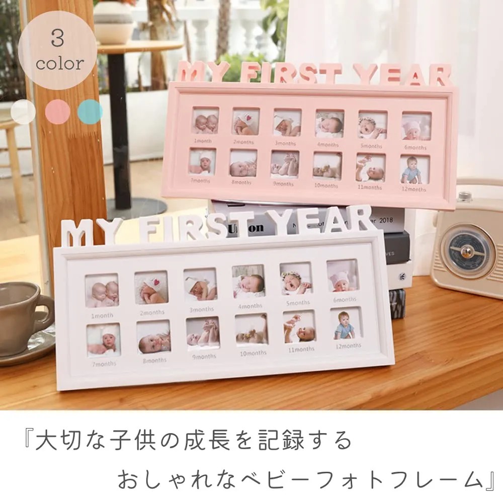 ベビーフォトフレーム 12ヶ月 1年間の成長が見える 写真立て 出産祝い ギフト 新生児 成長 子供 記念品 誕生日 プレゼント (M&Boo)