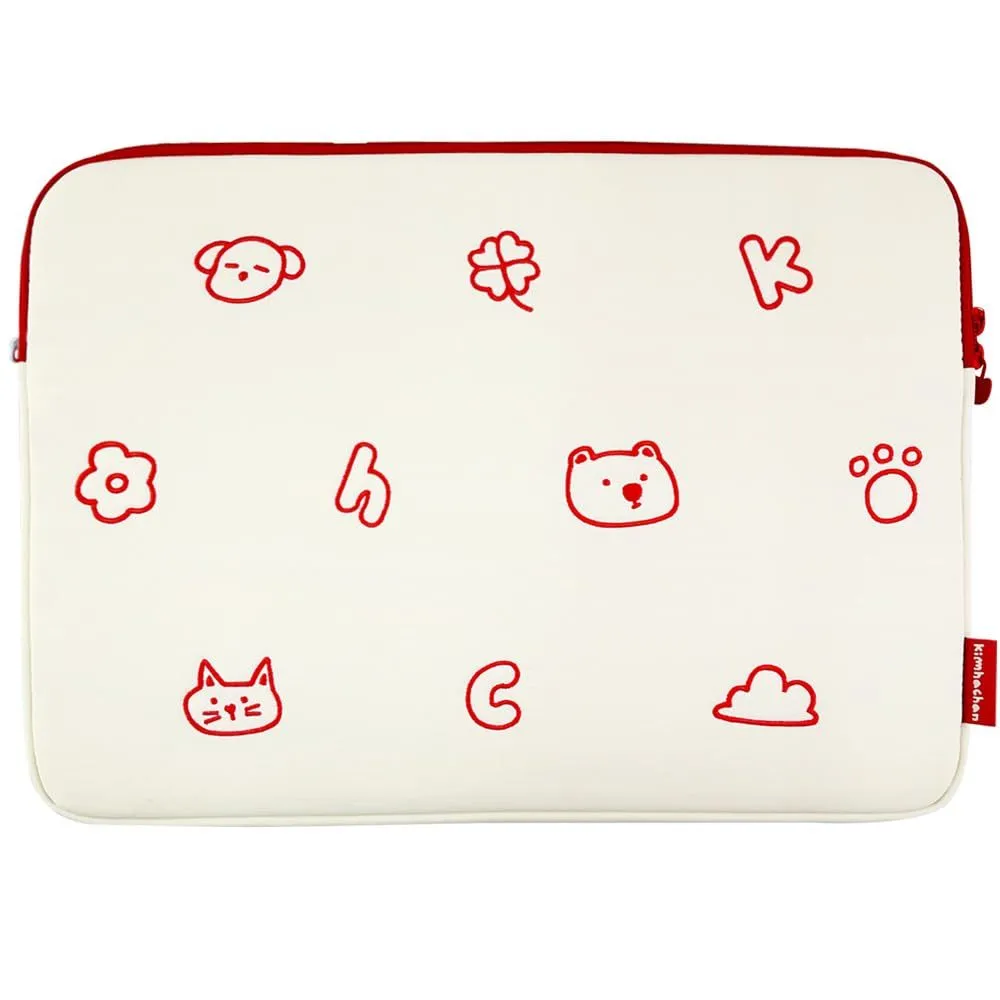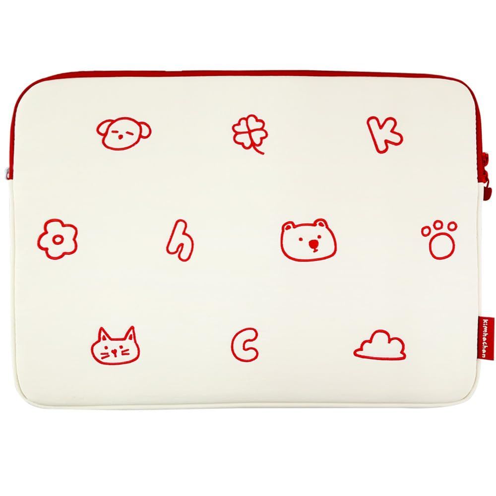 【人気商品】17インチ) (アイボリー+レッド 小物ポーチ タブレットスリーブ Dリング付き クッション入り PCケース 刺繍ナイロン素材 | ノートパソコンポーチ パターン パフィー キムハチャン