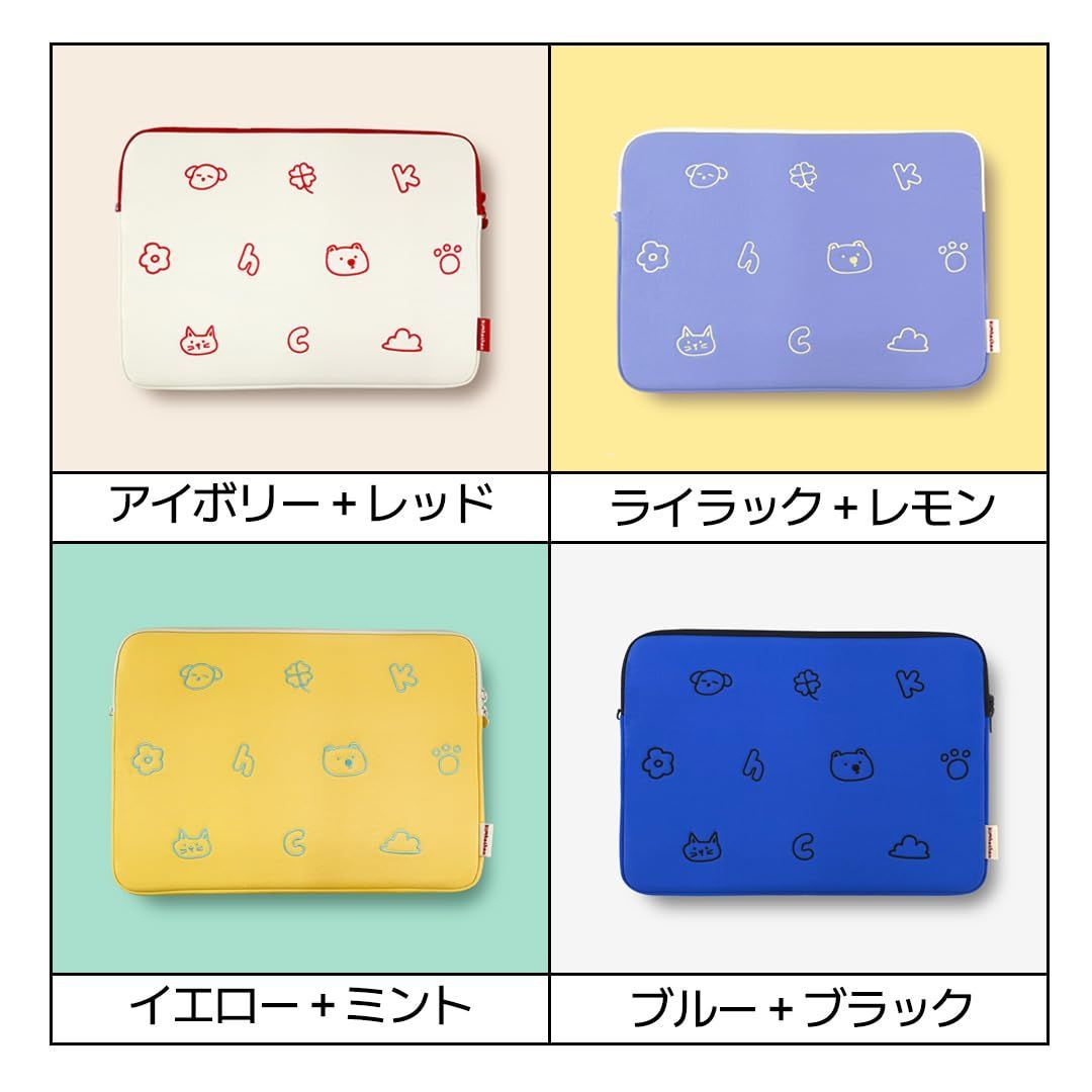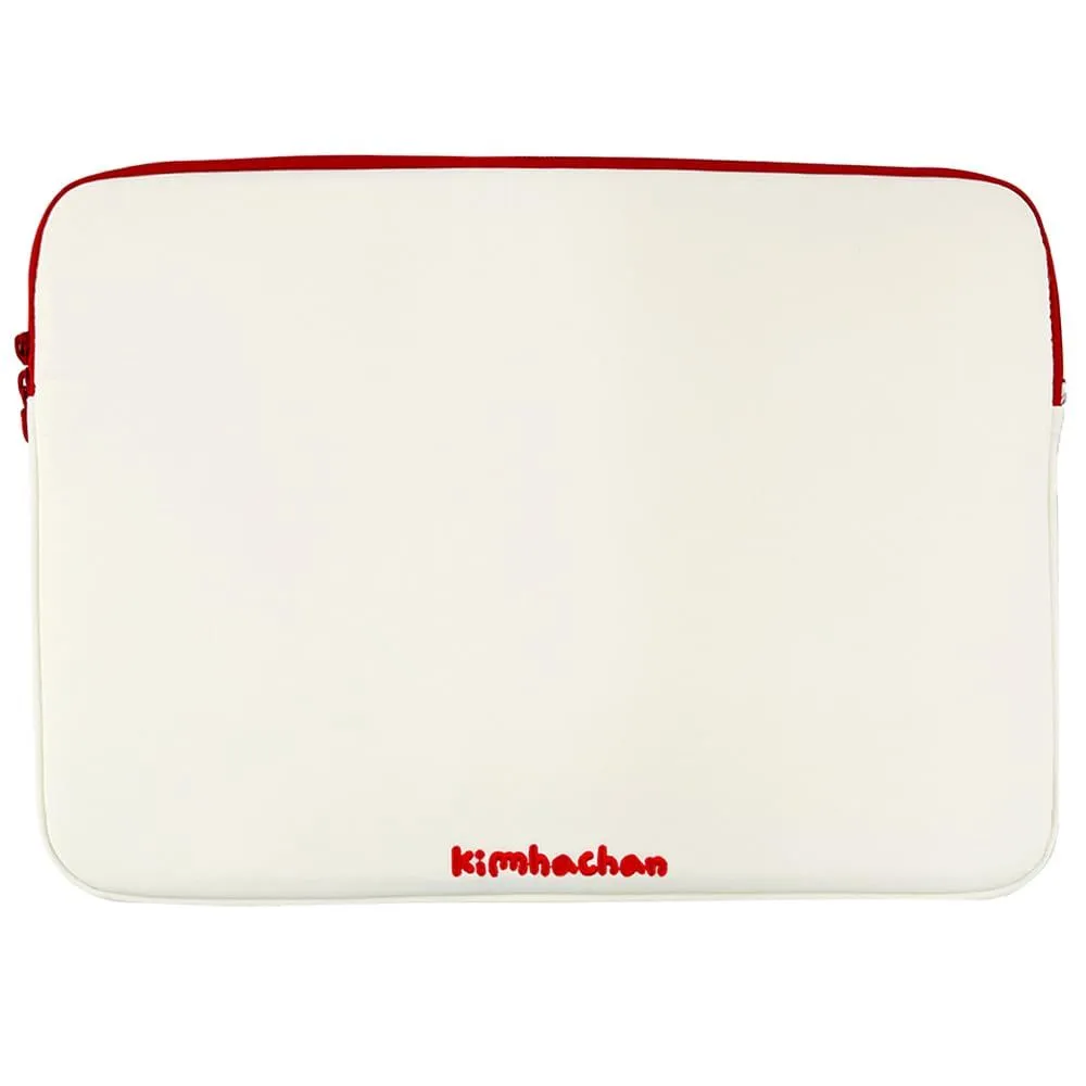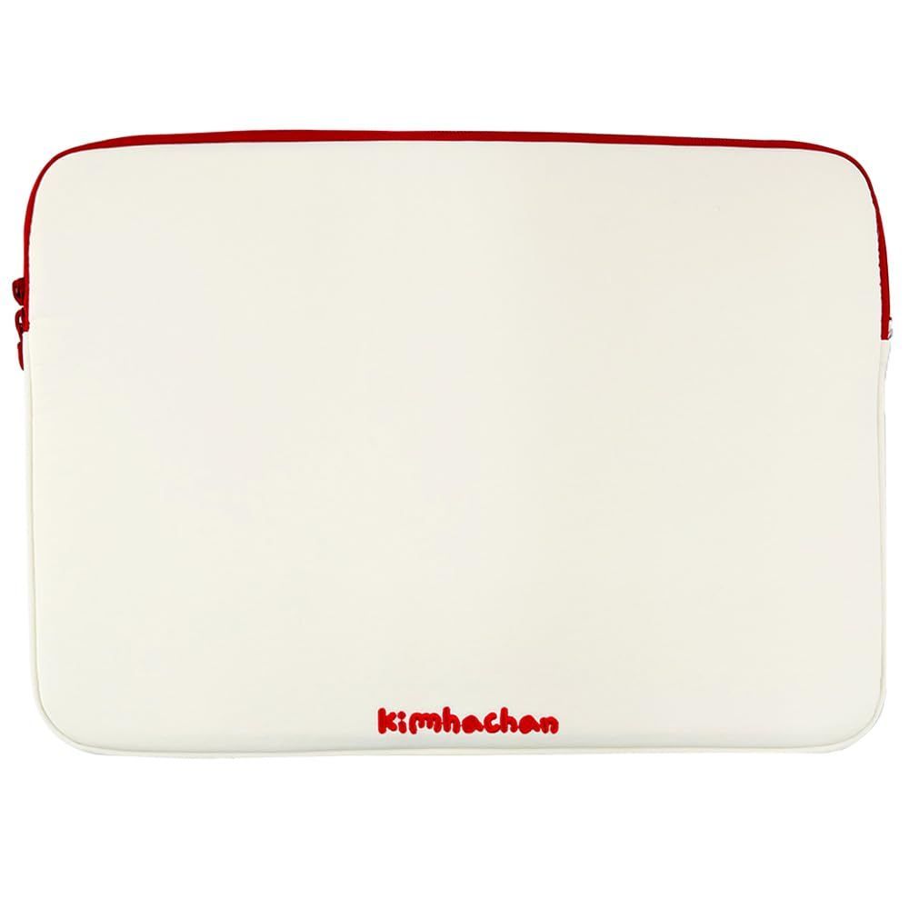 キムハチャン パフィー パターン ノートパソコンポーチ | 刺繍ナイロン素材 PCケース クッション入り Dリング付き タブレットスリーブ 小物ポーチ (アイボリー+レッド, 17インチ)