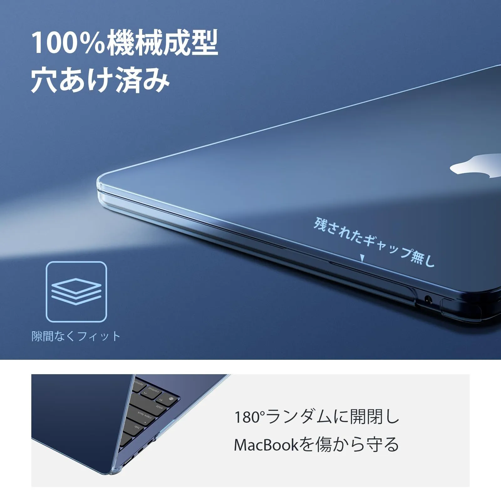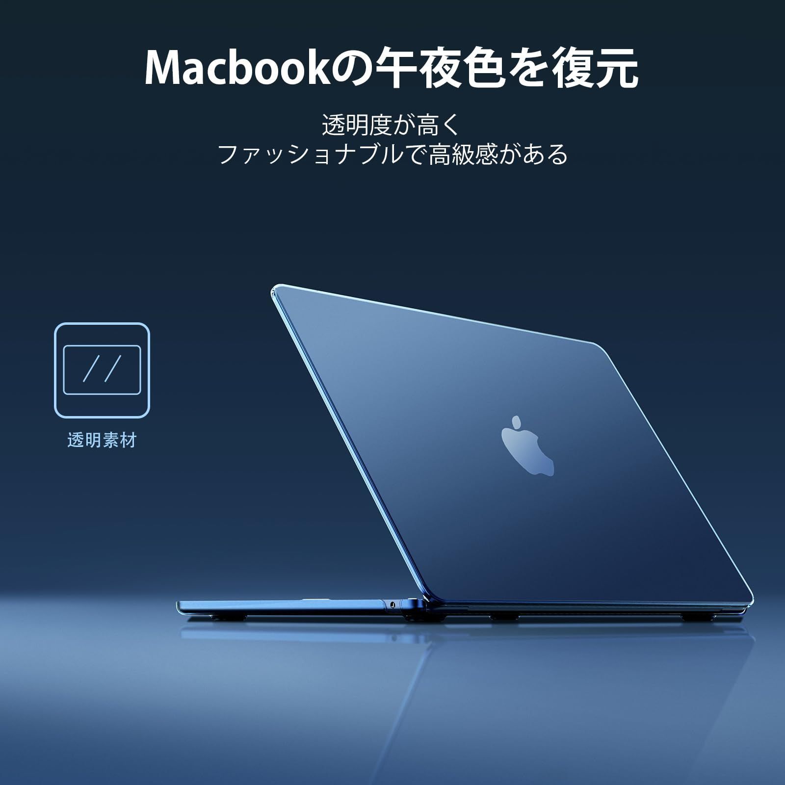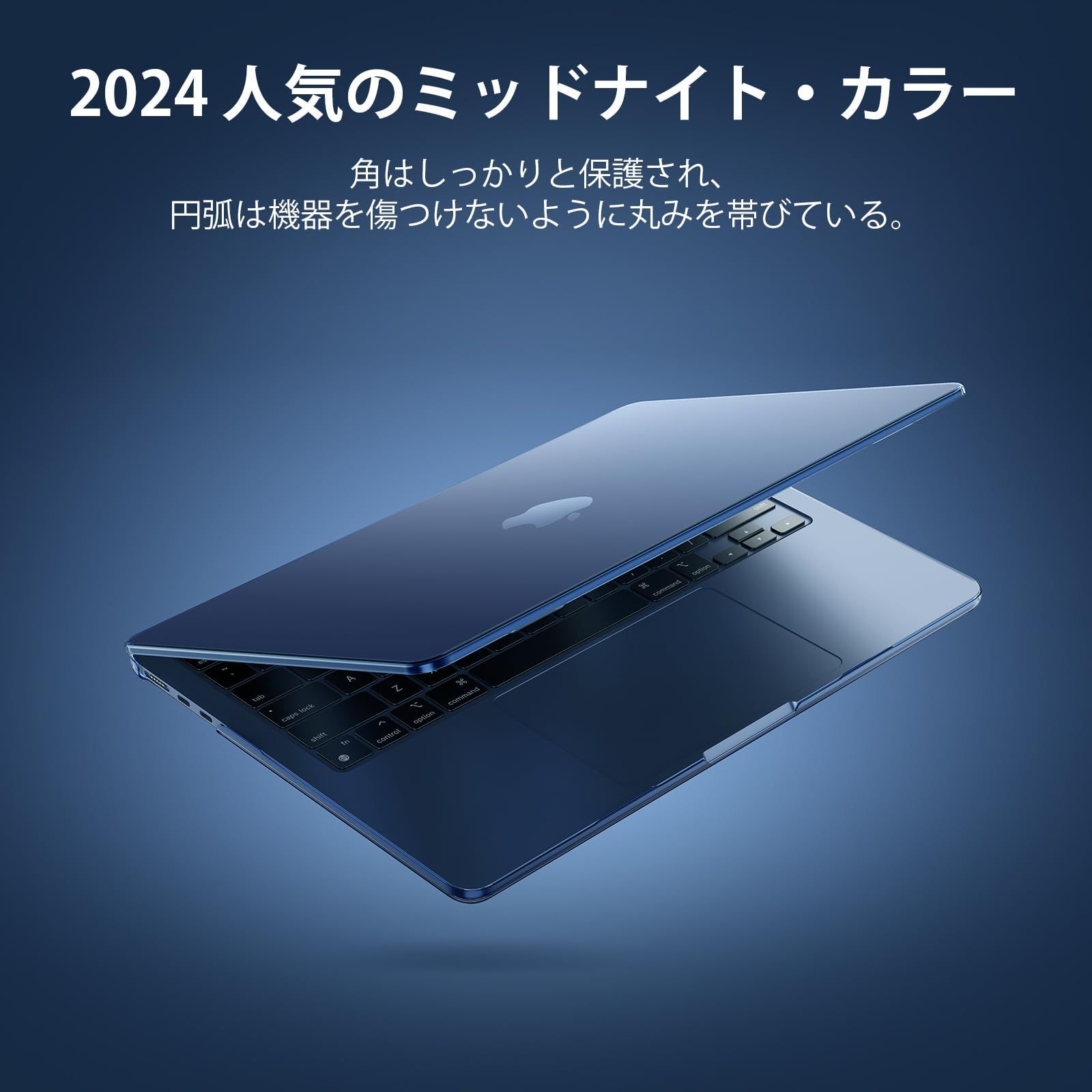 2024年の人気ミッドナイトカラー - 高い透明度を誇るこのケースは、MacBookのミッドナイトオリジナルカラーとロゴを際立たせます。光沢のある外観が、MacBookをさらにスタイリッシュで高級感のあるものにします