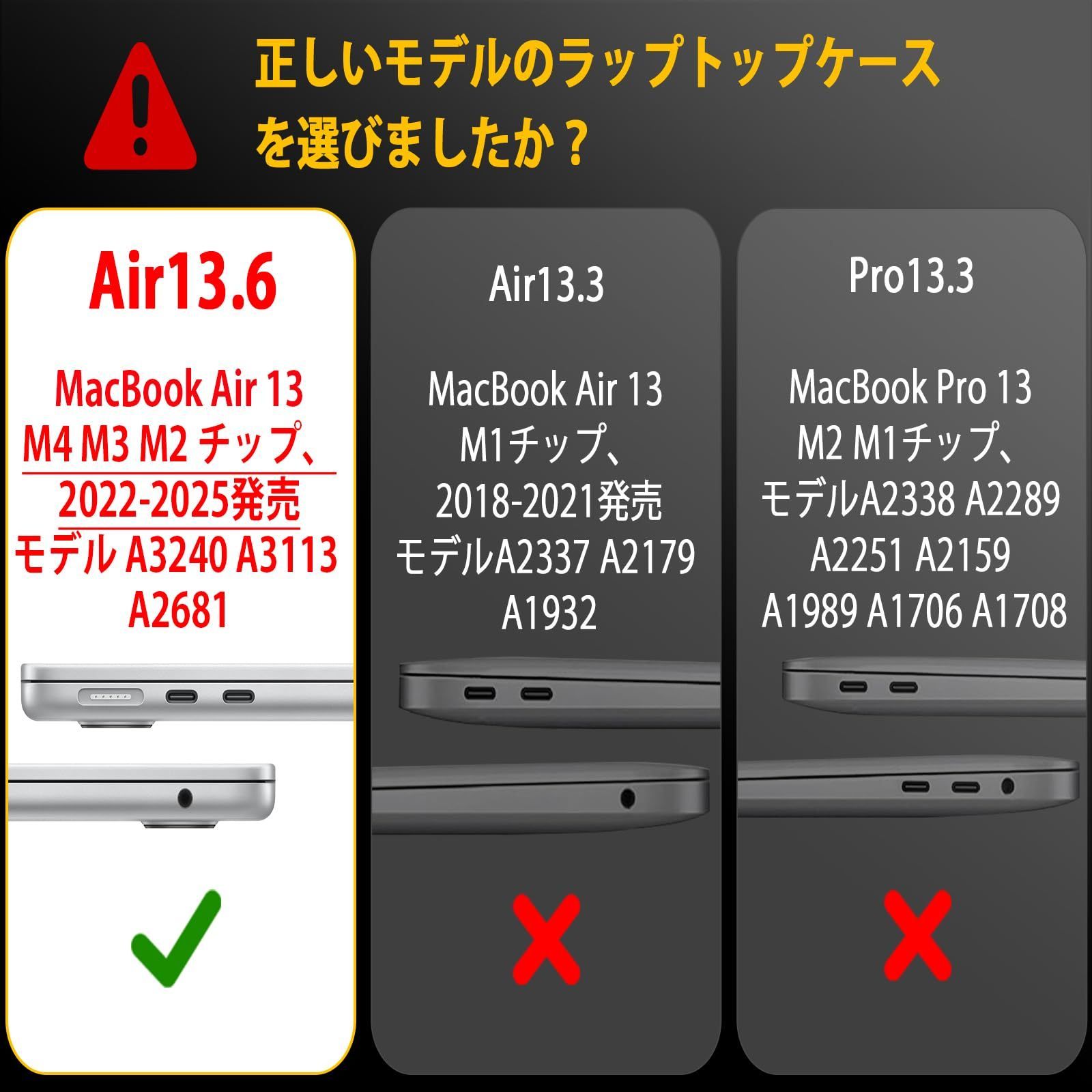 対応機種 - 13インチMacBook Air M4 2025 M3 A3240 A3113 2024年3月発売モデル/M2 A2681 2022年発売対応、モデル番号はマックブック底面のAから始まるモデル番号をご確認下さい 、ご質問は EooCoo をクリックしてください