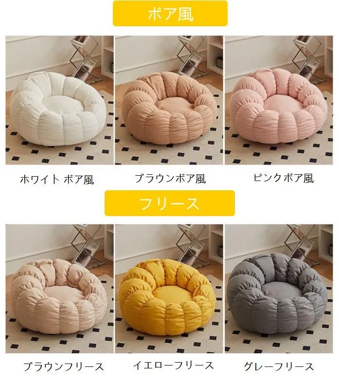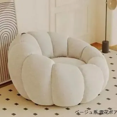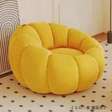 【美品】クリーム風 南瓜ソファ 1人掛け 可躺可睡 小型 雪花ボア 布製 ソファ (80*80*50) bu1