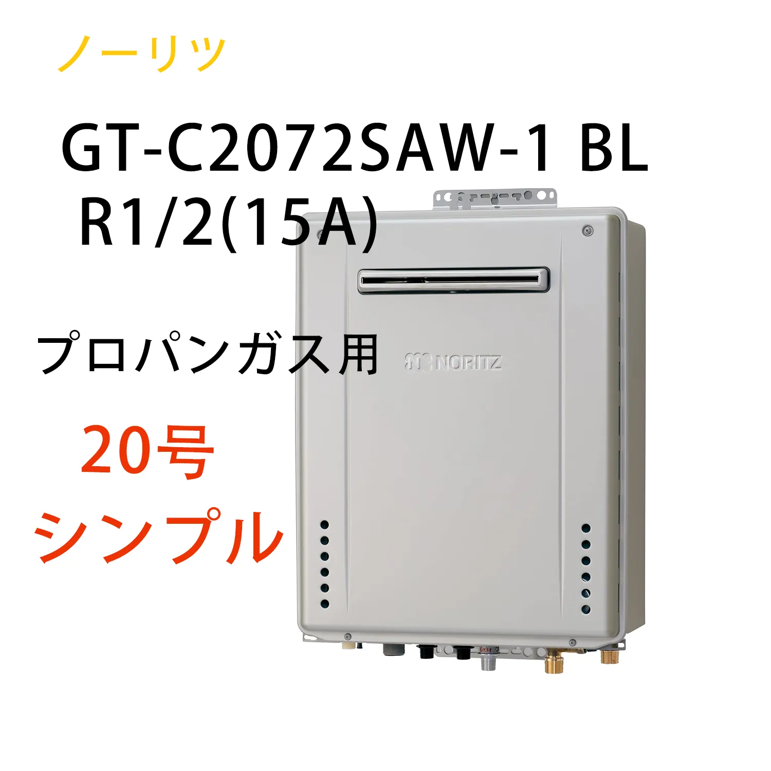 20号 GT-C2072SAW-1 BL R1/2(15A) ノーリツ ガスふろ給湯器(シンプル) プロパンガス用 屋外壁掛形 エコジョーズ