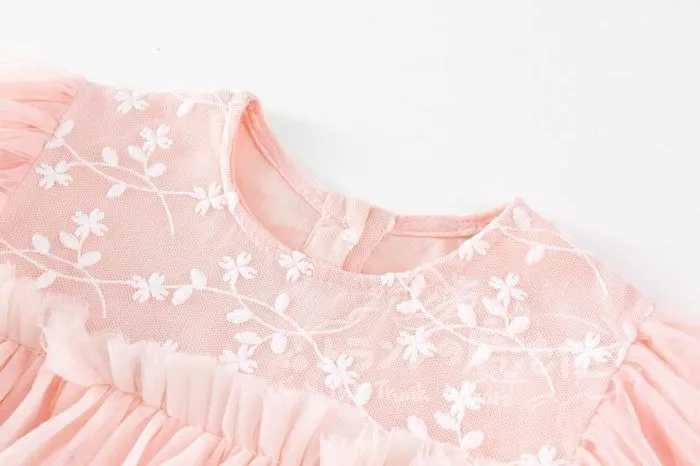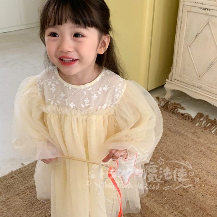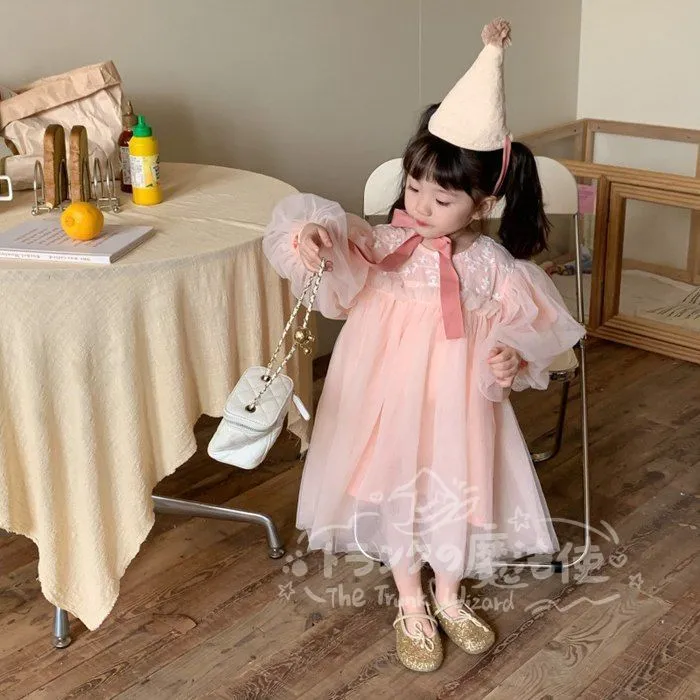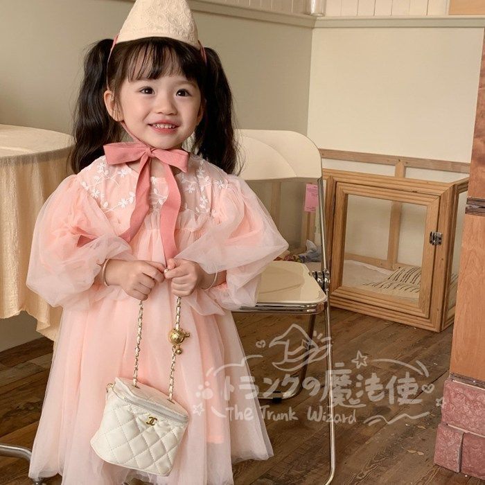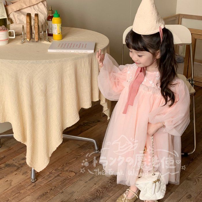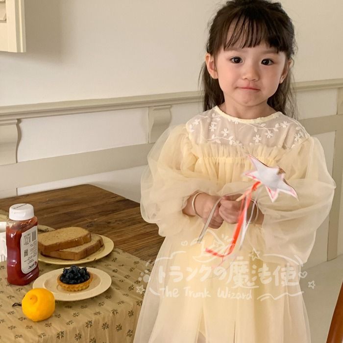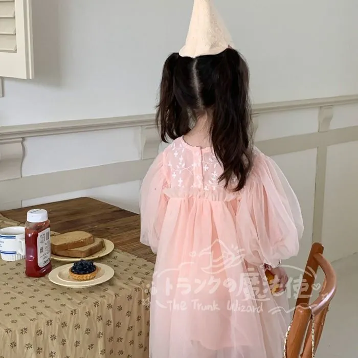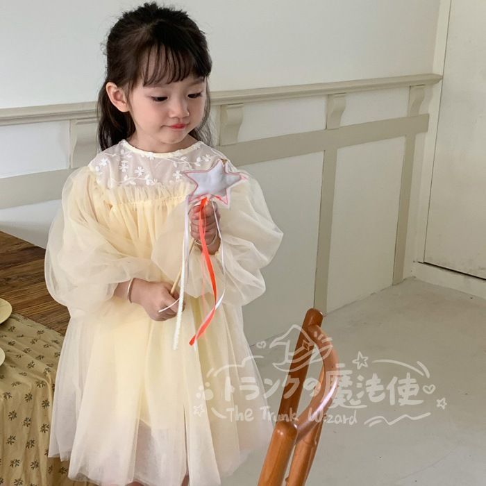 ワンピース チュニック 女の子 花柄レース チュールスカート クルーネック 長袖 子供ドレス 子ども キッズ 保育園 子供服 ナチュラル ガール きれい目 シンプル かわいい 春 秋 フォーマル 入園式 入学式 卒園式 発表会 プレゼント