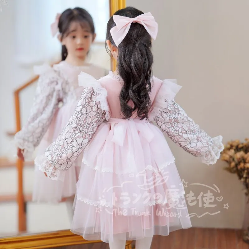 女の子 ベロア ワンピース 子供服 子どもドレス 切り替え キッズ 秋 冬 可愛い 暖かい キッズ服 プレゼント 内祝い 幼稚園 保育園 発表会 入園式 誕生日 秋冬 おしゃれ 長袖 110 120 130 140 150cm