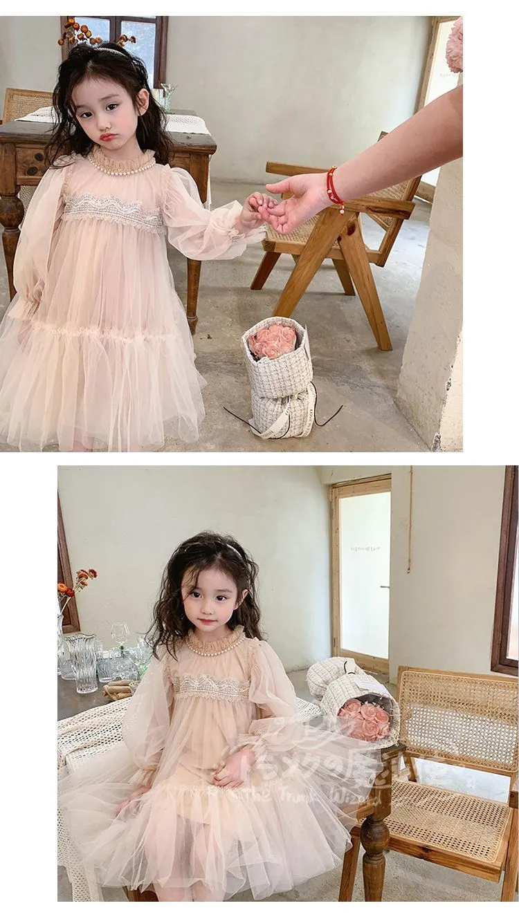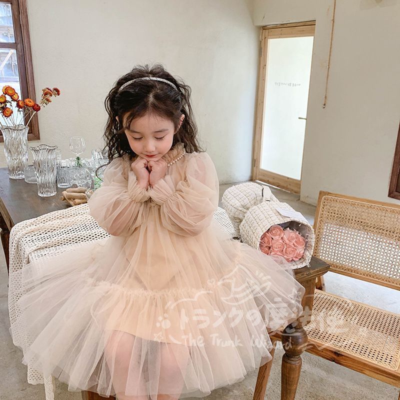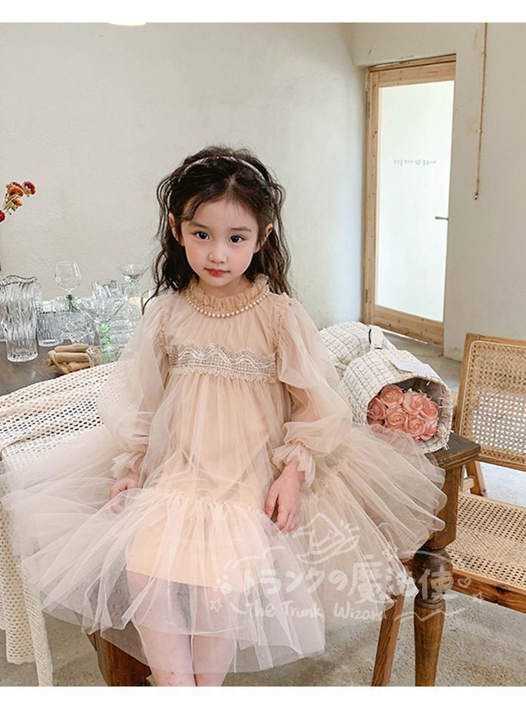 子どもドレス 女の子 ワンピース チュール レース 切り替え 入学式 子供服 プチハイネック 子供服 キッズ 秋 冬 春 可愛い キッズ服 プレゼント 内祝い 幼稚園 保育園 おしゃれ 長袖 90 100 110 120 130 140cm