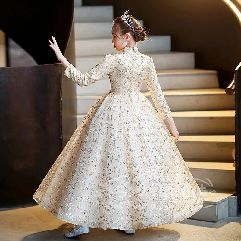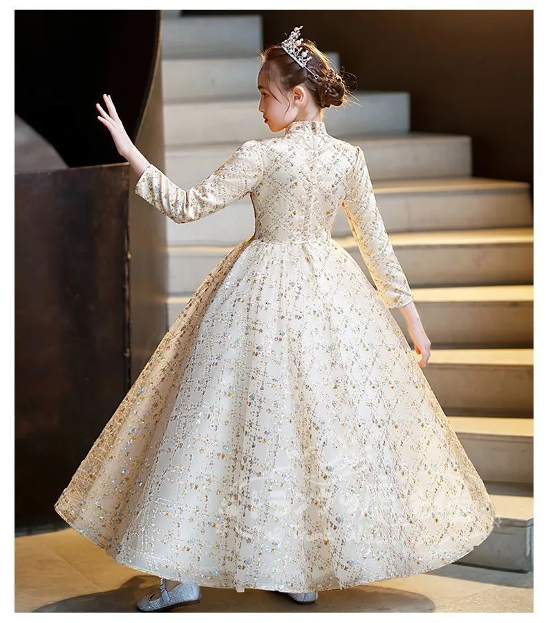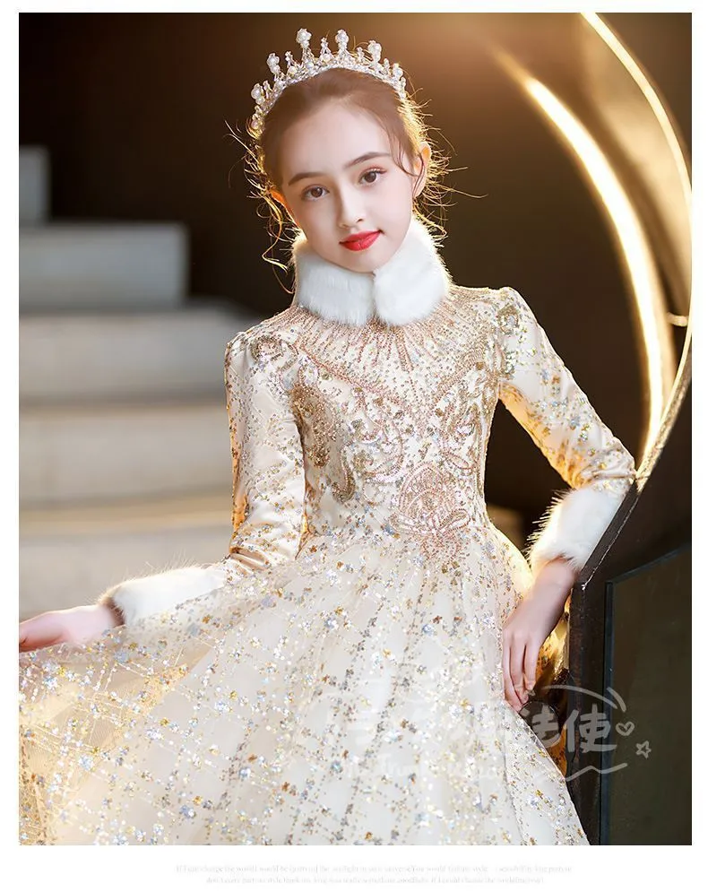 女の子 フォーマル 子供 ドレス マフラ付き 長袖ドレス 秋冬 女の子 キッズ ピアノ 発表会 ドレス フォーマル ロングドレス ワンピース パーディー ドレス 上品 エレガント ジュニア ドレス