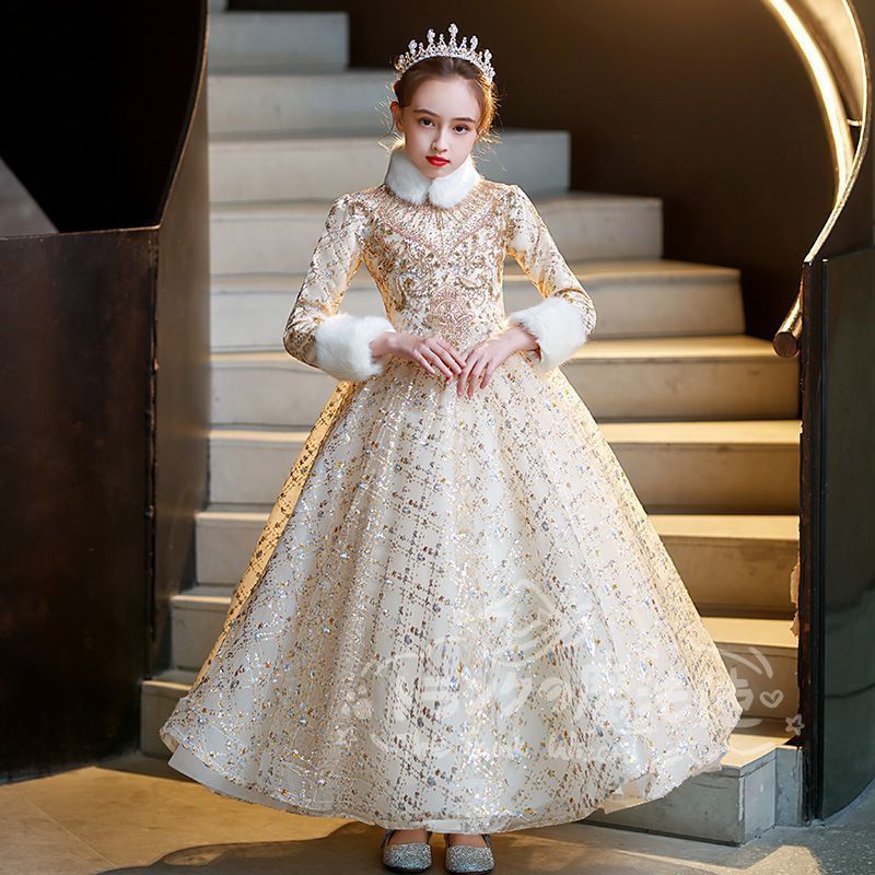 特価★女の子 フォーマル 子供 ドレス マフラ付き 長袖ドレス 秋冬 女の子 キッズ ピアノ 発表会 ドレス フォーマル ロングドレス ワンピース パーディー ドレス 上品 エレガント ジュニア ドレス CTZ121P154