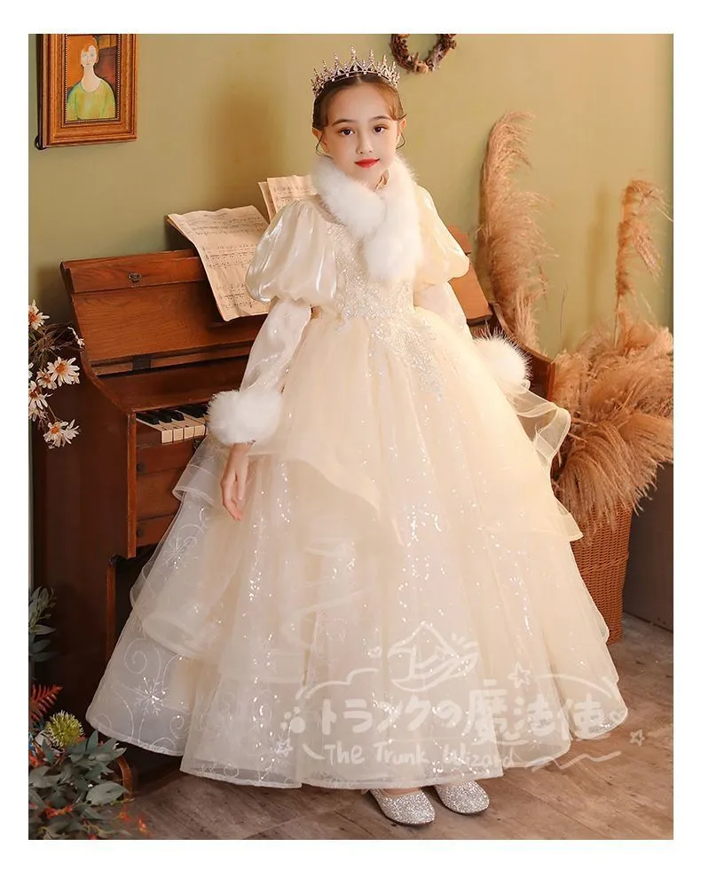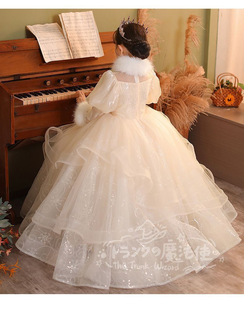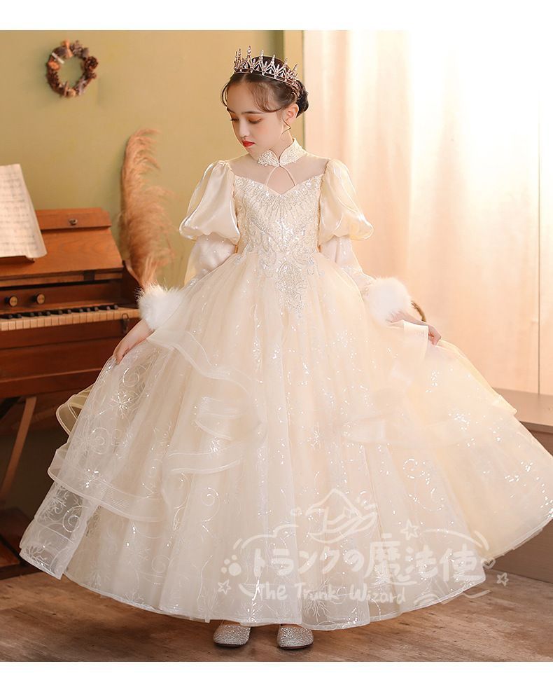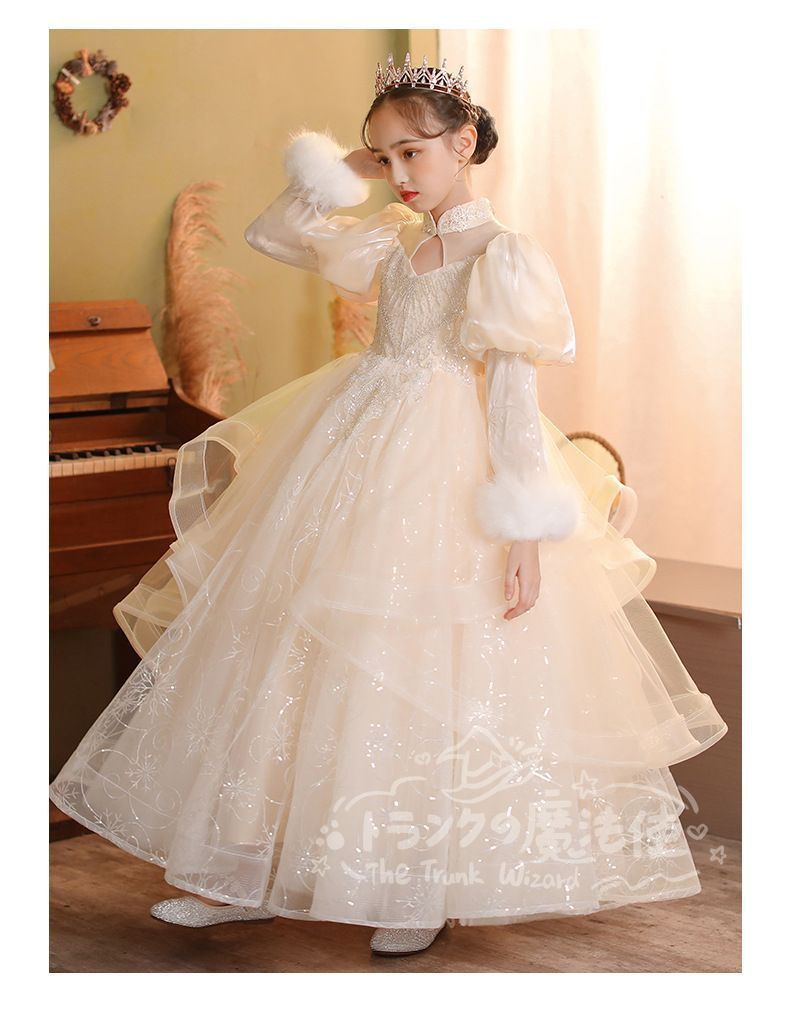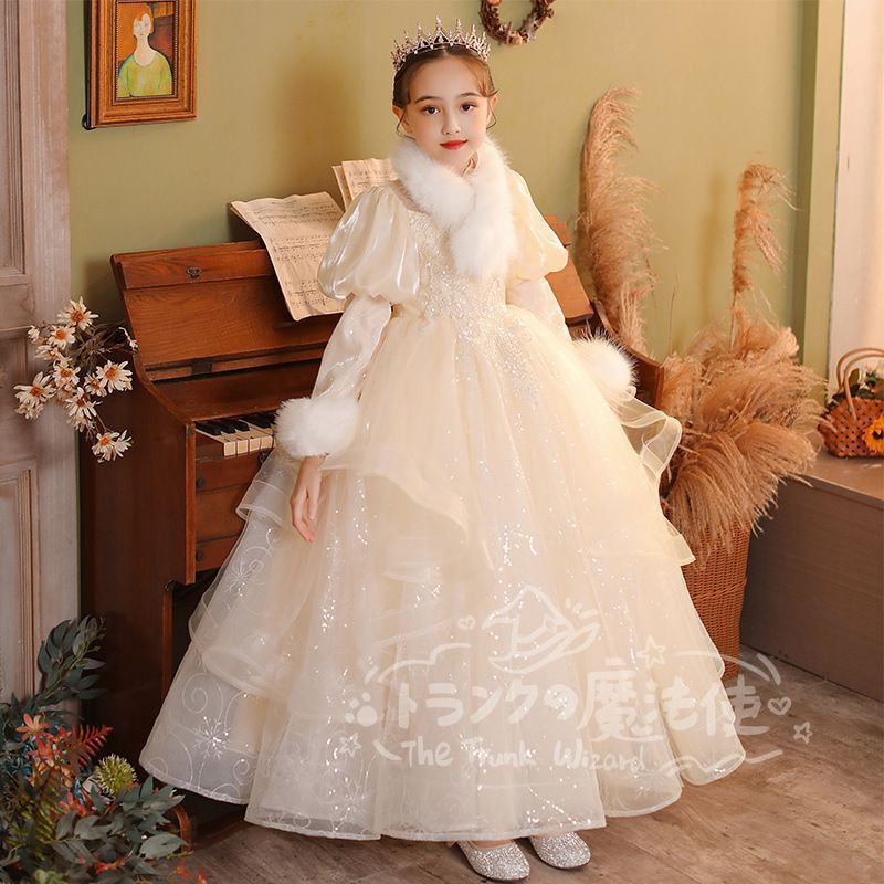 ロングドレス マフラー付き 秋冬 フォーマル 子供 ドレス 女の子 キッズ ピアノ 発表会 演奏会 ドレス フォーマルワンピース パーディー ドレス 上品 エレガント ジュニア ドレス