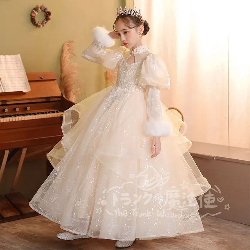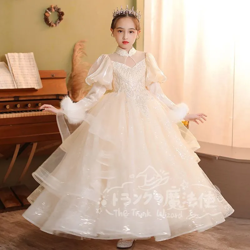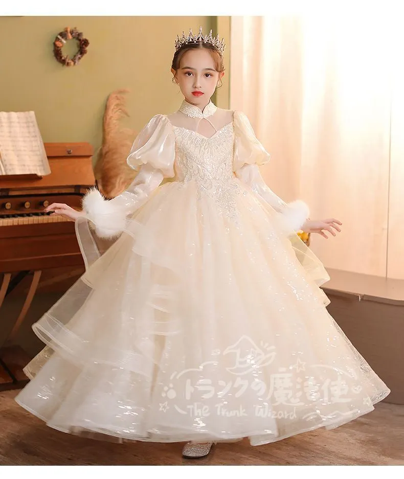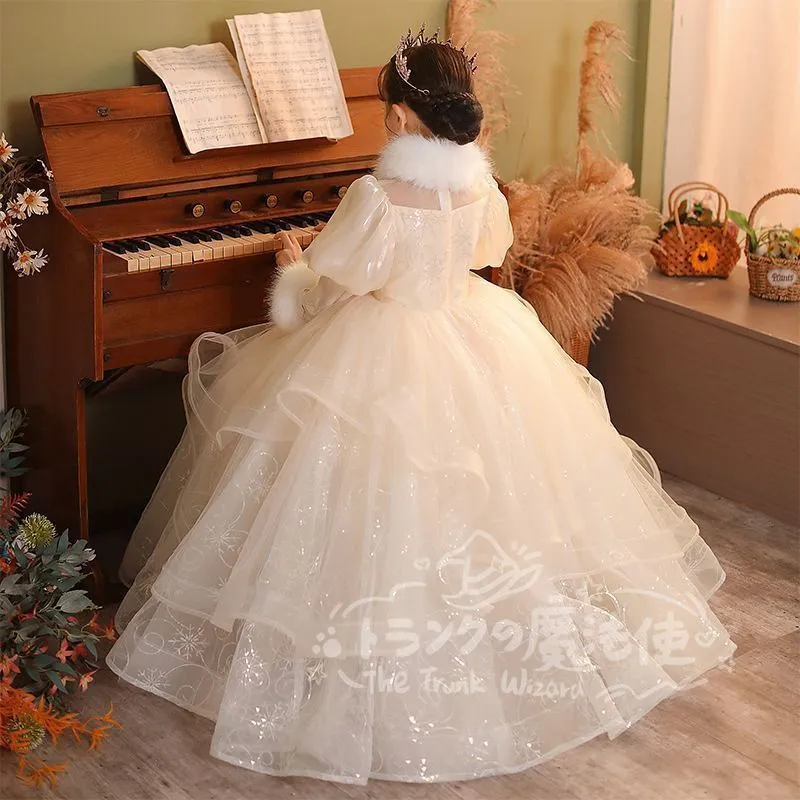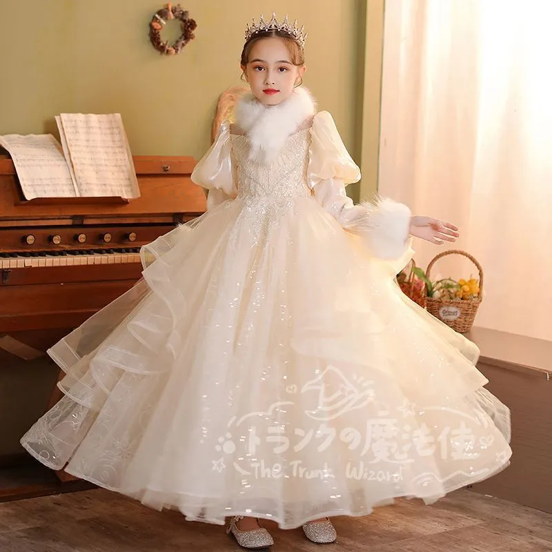 ロングドレス マフラー付き 秋冬 フォーマル 子供 ドレス 女の子 キッズ ピアノ 発表会 演奏会 ドレス フォーマルワンピース パーディー ドレス 上品 エレガント ジュニア ドレス
