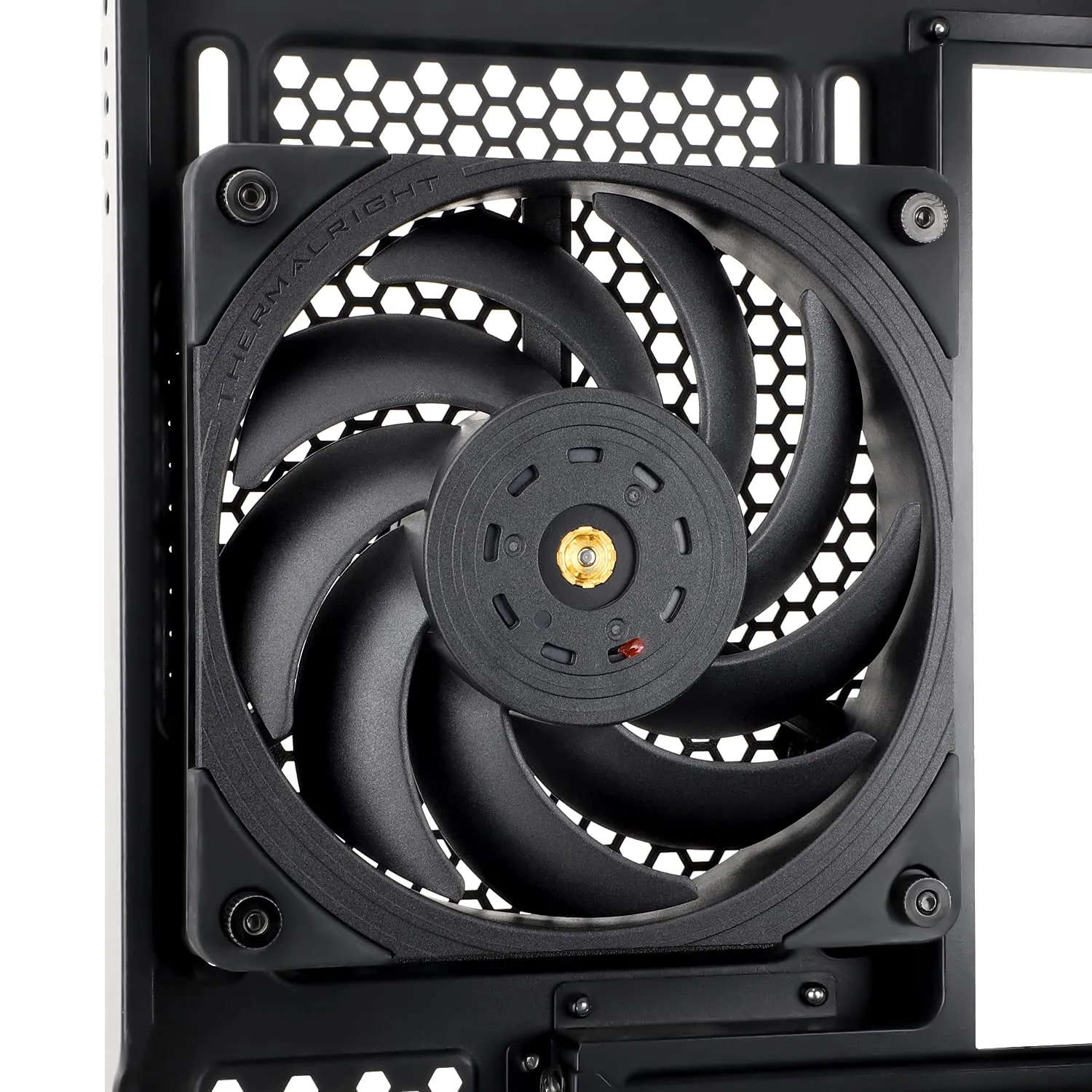 【工業用グレードのケースファン】を採用。4PIN PWMファンケーブルインターフェイスを通じて、マザーボードの温度に応じて速度を決定することができ、最大速度2150RPMの自動速度制御を行います。