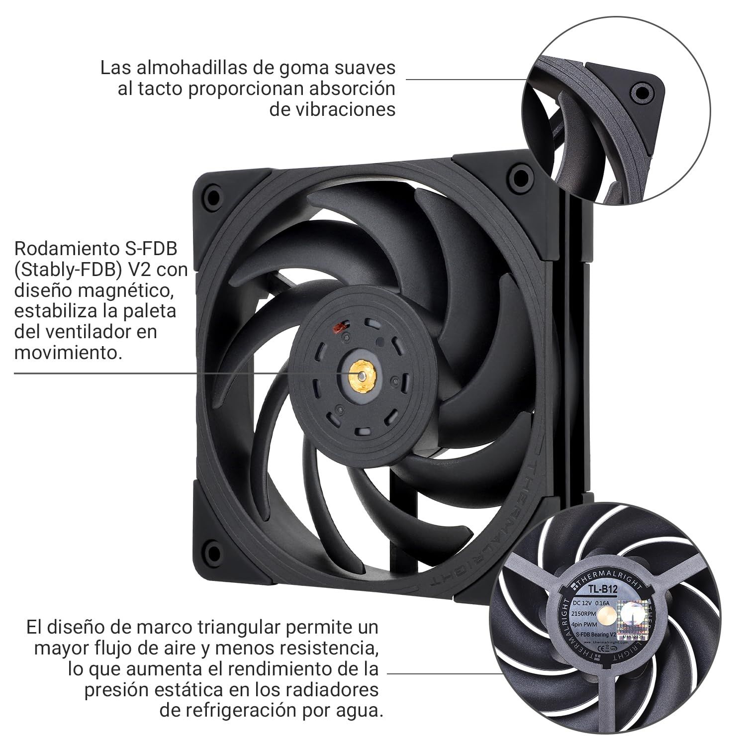 Thermalright TL-B12 120mm CPUクーラーファン、コンピュータケースファン、4PIN PWM PCファン、2150RPM、S-FDBベアリング用静圧性能ファン