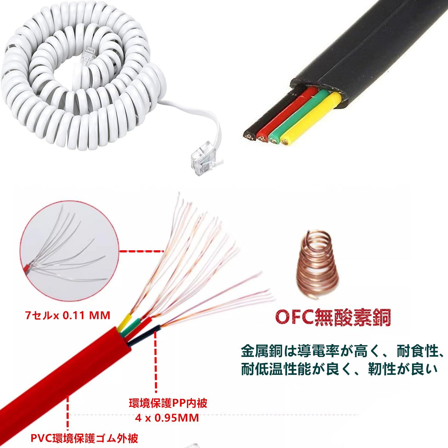 【長持ち】電話ケーブルは環境保護弾性PVC材料で作られ、腐食防止、柔軟で整理しやすく、老化防止、耐引張耐摩耗、長時間黄色くならない。 ★