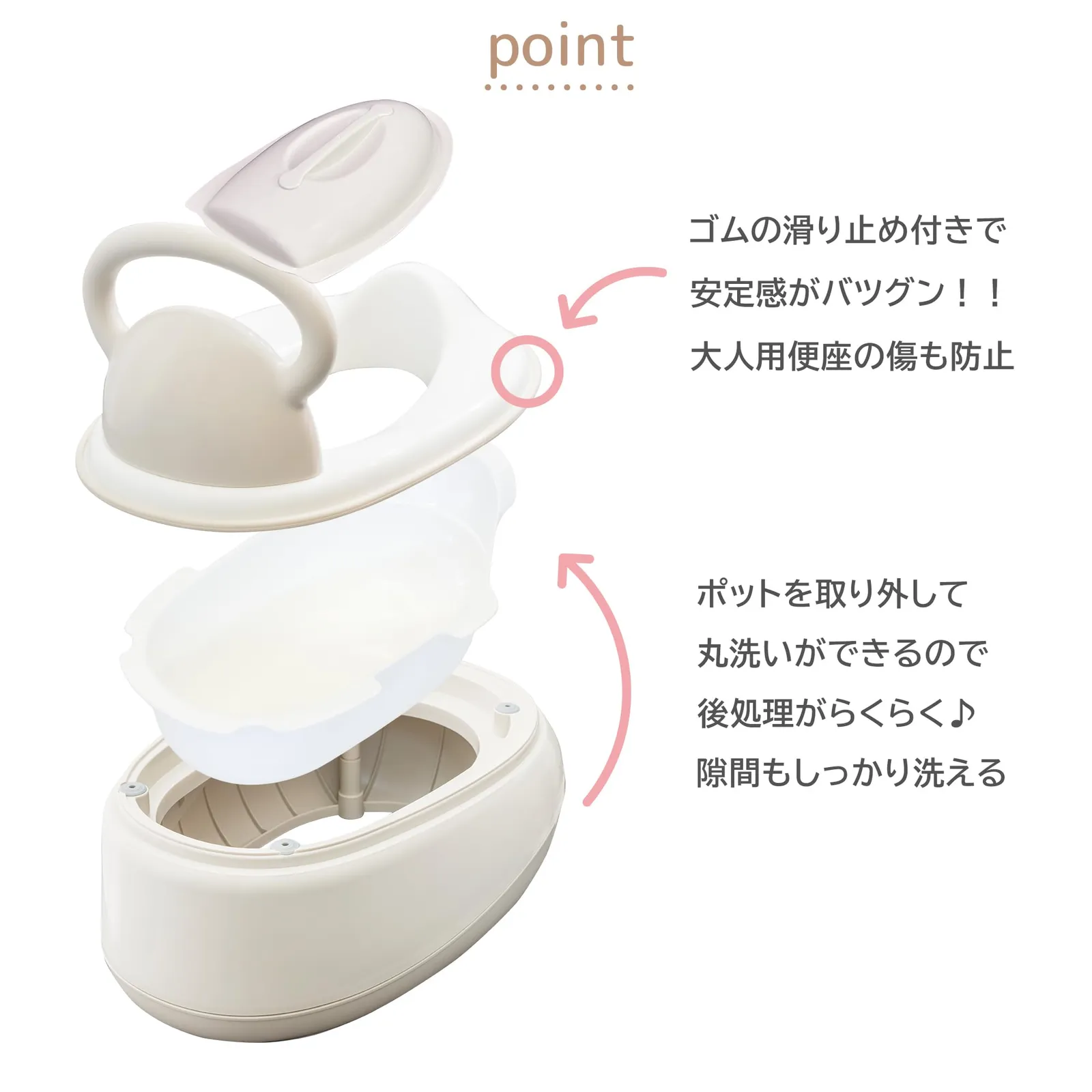 ●おまる使用時はポット付きなので、後片付けが簡単です。