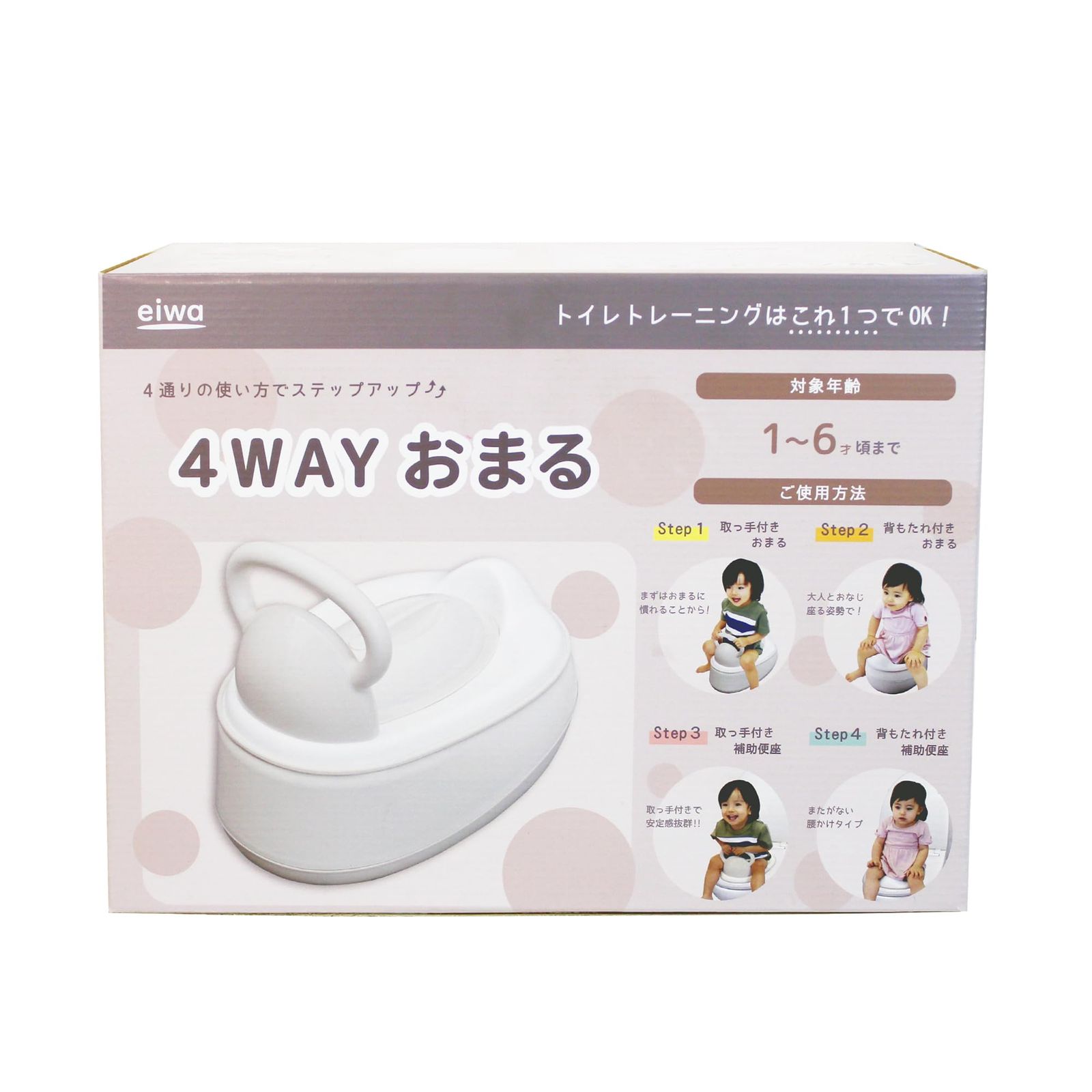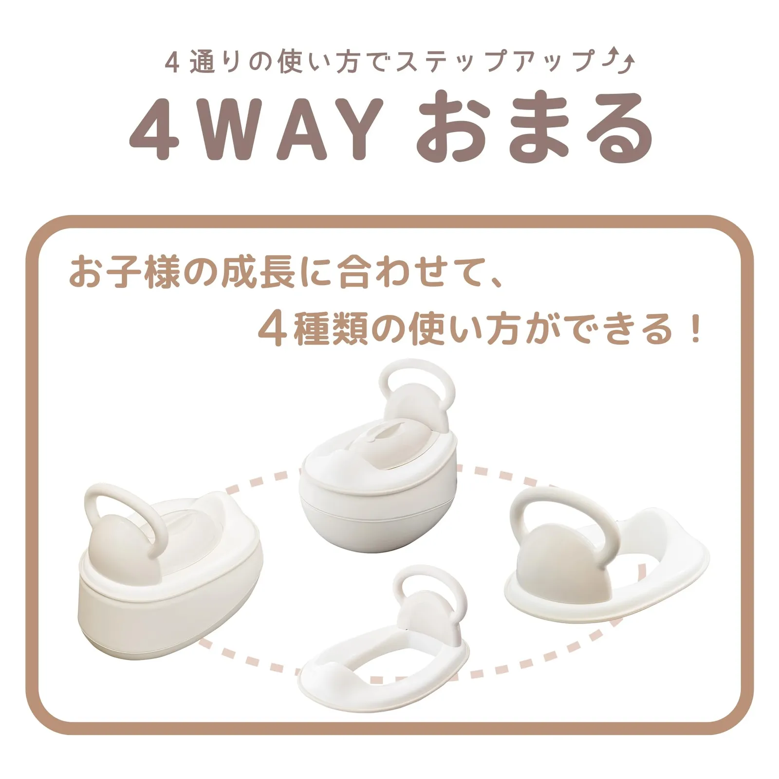 グレージュカラーがどんなお部屋やトイレにも合わせやすい。4種類の使い方ができるので、成長に合わせてステップアップできます。