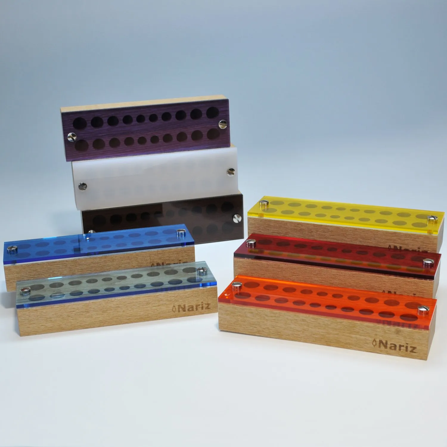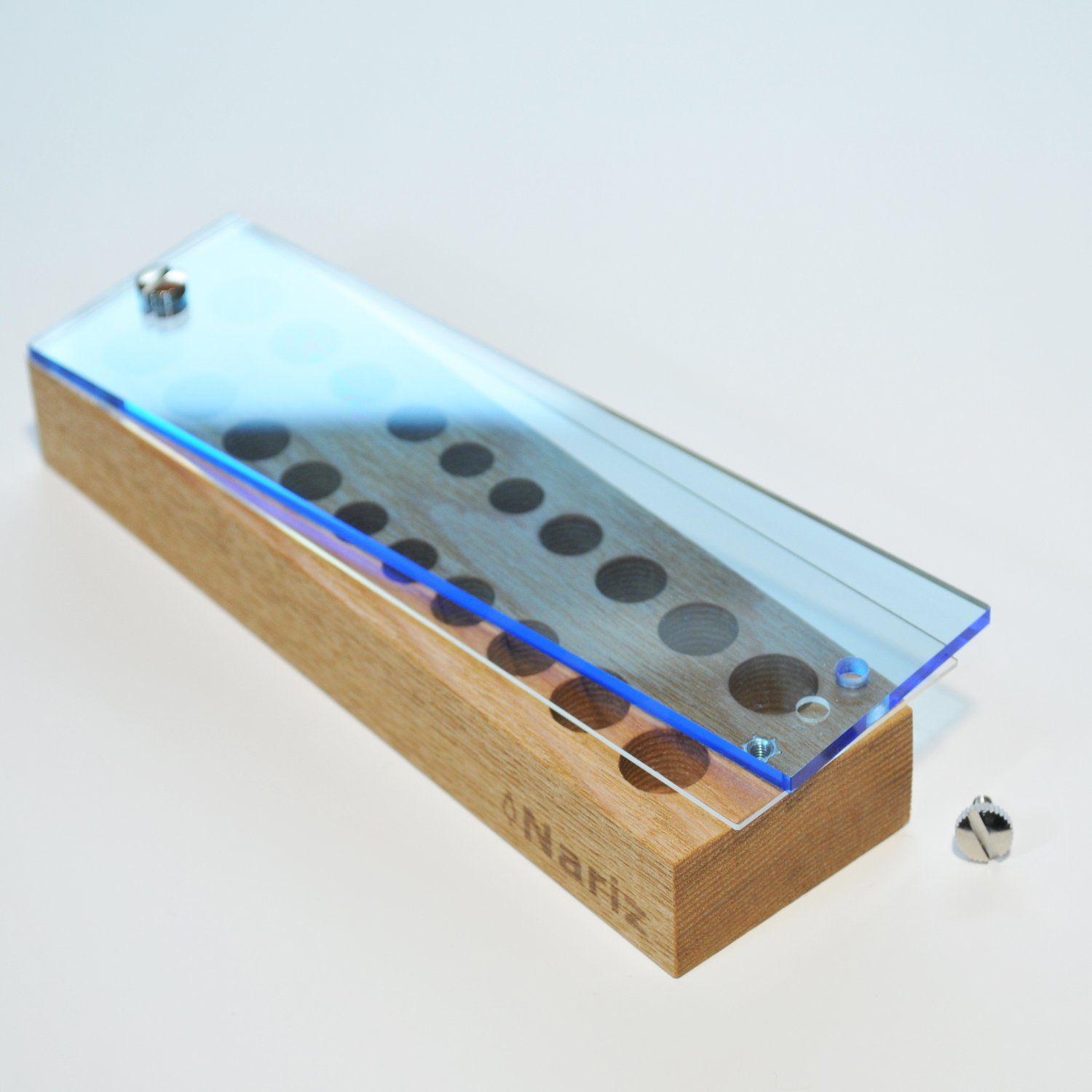 天然木とカラフルなアクリルのカバーはまるでケーキを思わせるデザイン。