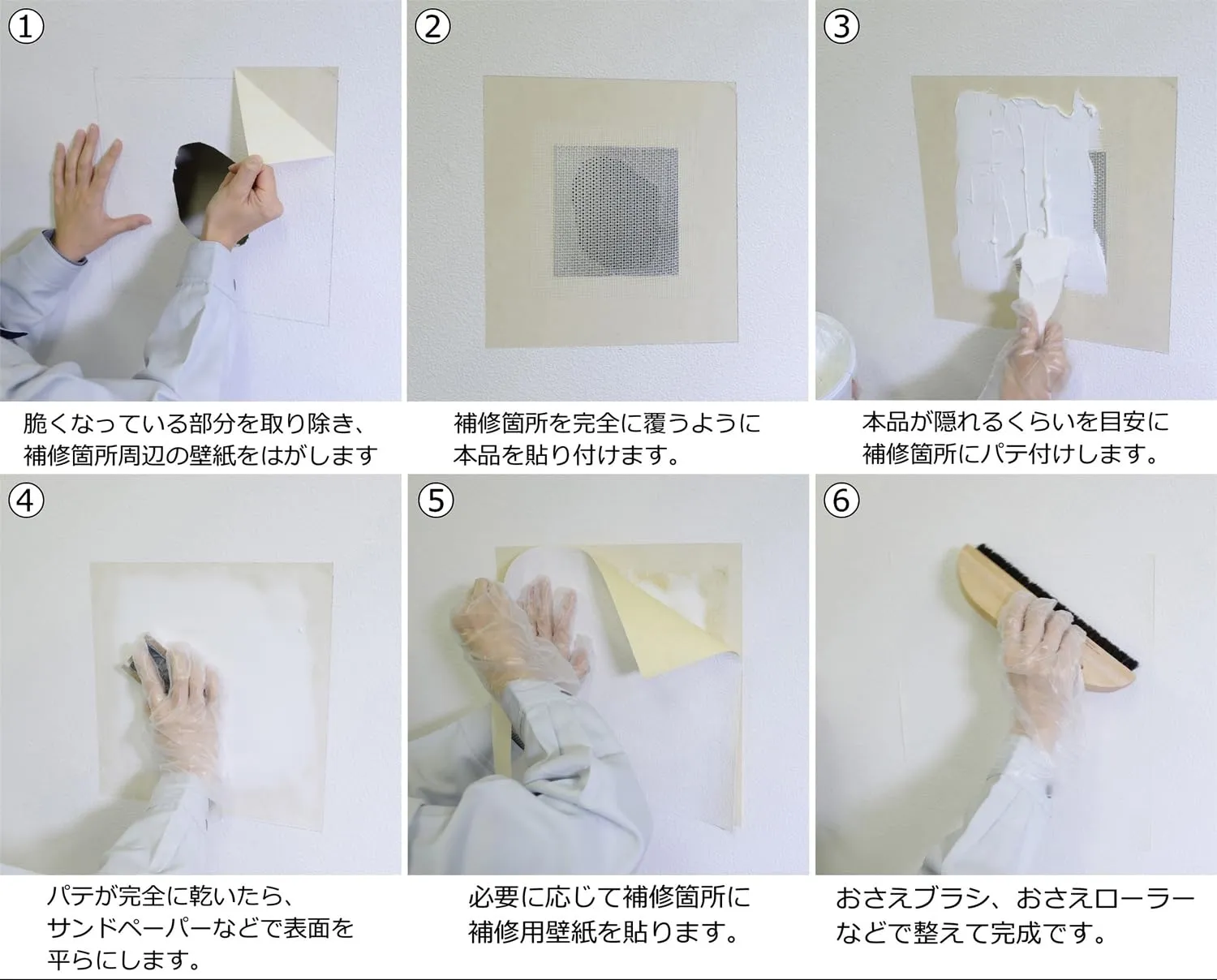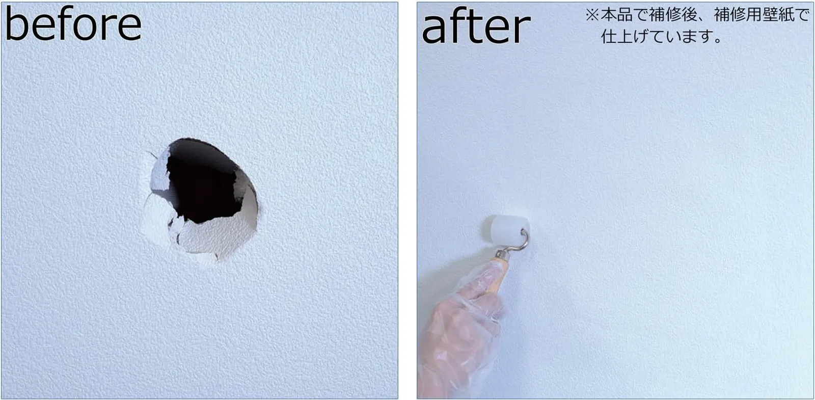 用途:石膏ボード、ベニヤ板、モルタル等の屋内外の壁や天井の穴補修時のパテ付け作業の下地に。