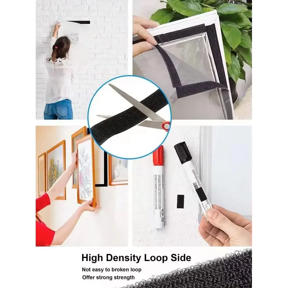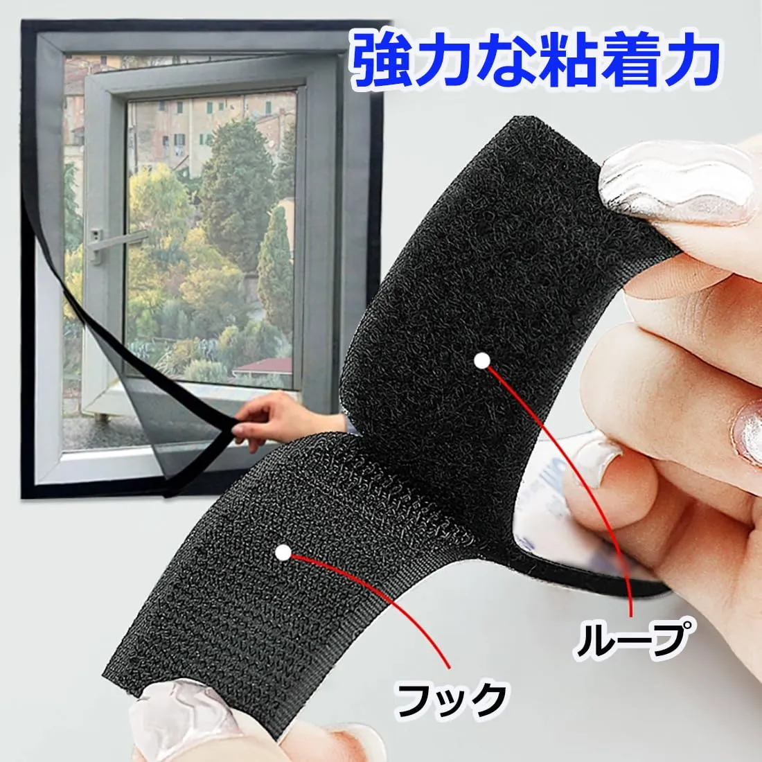 【面ファスナー】ポリエステル製で耐水性に優れ、フック側とループ側が水に濡れても強力なかみ合わせて接着力が何回も利用できます。 強力なかみ合わせ力を持って、繰り返し脱着ができます。なお超強力両面テープが付いているので、様々なものを貼り合わせる目的で使用します。 小物収納、網戸の取付、DIY制作などの日常用。
