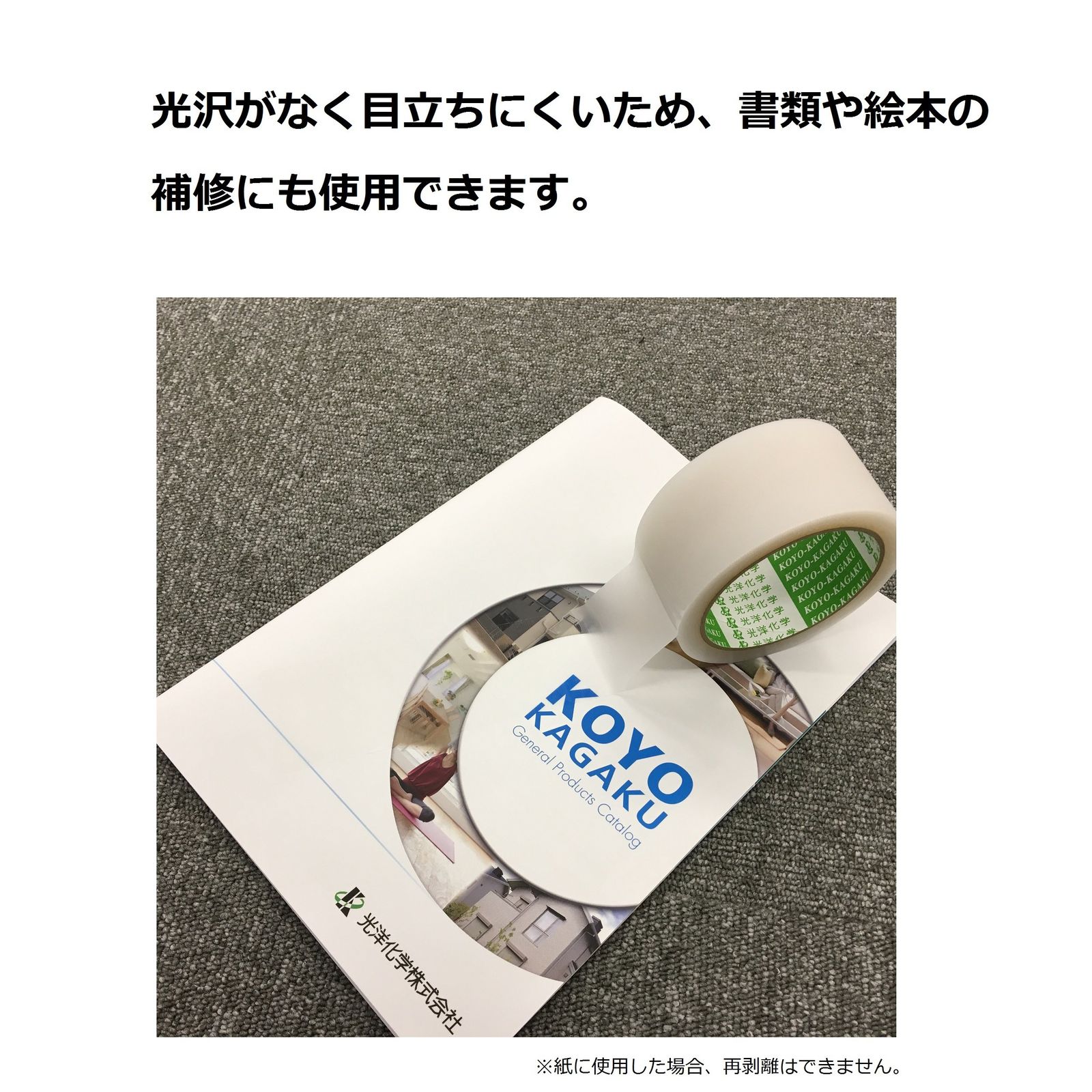 ●紙に貼った際には、テープが目立ちにくいため、絵本の補修などにも使用可能です。(※紙に貼った際には再剥離はできません。) ご注意(免責)>必ずお読みください 被写体の剥がれ、糊残りの有無は事前にご確認ください。剥がす際は、ゆっくりと剥がしてください。使用用途以外には使用しないでください。貼付ける面のほこり、油分、汚れなどはよく拭き取ってから貼付け、しっかりと圧着してください。テープを保管する場合、直射日光を避け涼しい所へ置いて下さい。 配送について、商品のサイズや配送先都道府県によって最適な配送業者を選択しております。 業者・配送方法の指定は承れません。ご了承ください。 万が一の不着、紛失、誤配送の場合など、最後まで責任もって対応致しますのでご安心下さい。 宜しくお願い致します。
