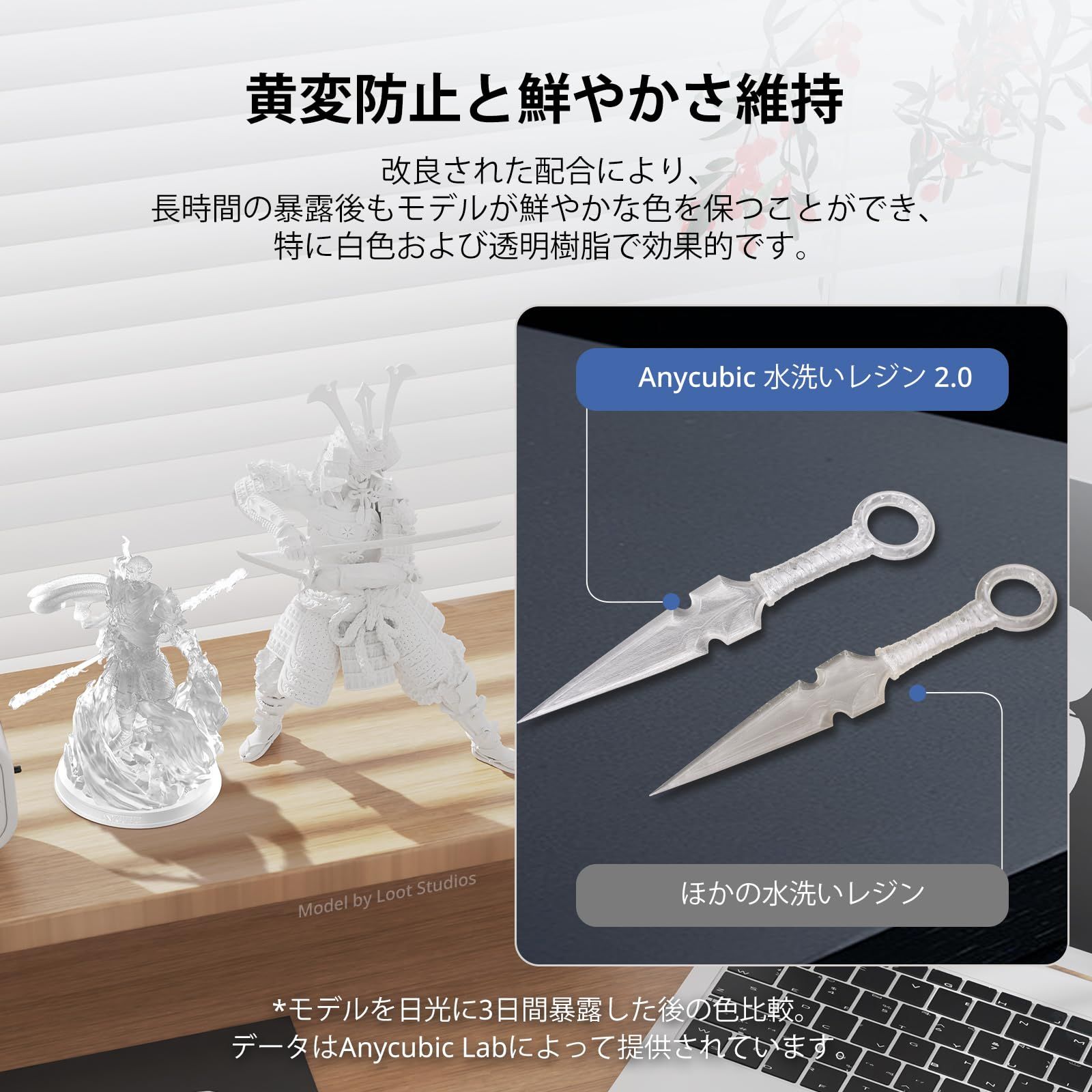 【高精度・低収縮率】 ANYCUBIC 水洗いレジン 2.0 は、光硬化時の収縮が少なく、高精度かつ滑らかな表面でモデルを印刷することができます。収縮率が低いため、どのモデルも細部まできれいに印刷されます。