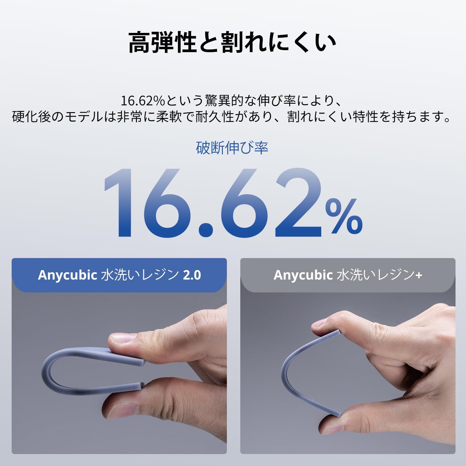 【超簡単なクリーニング】ANYCUBIC 水洗いレジン 2.0 は親水基を持ち、水溶性が良いため、アルコールの代わりに水で直接洗浄でき、アルコール使用時のコストを大幅に削減できます。また、Anycubic Wash and Cure 系列で洗浄することもできます。
