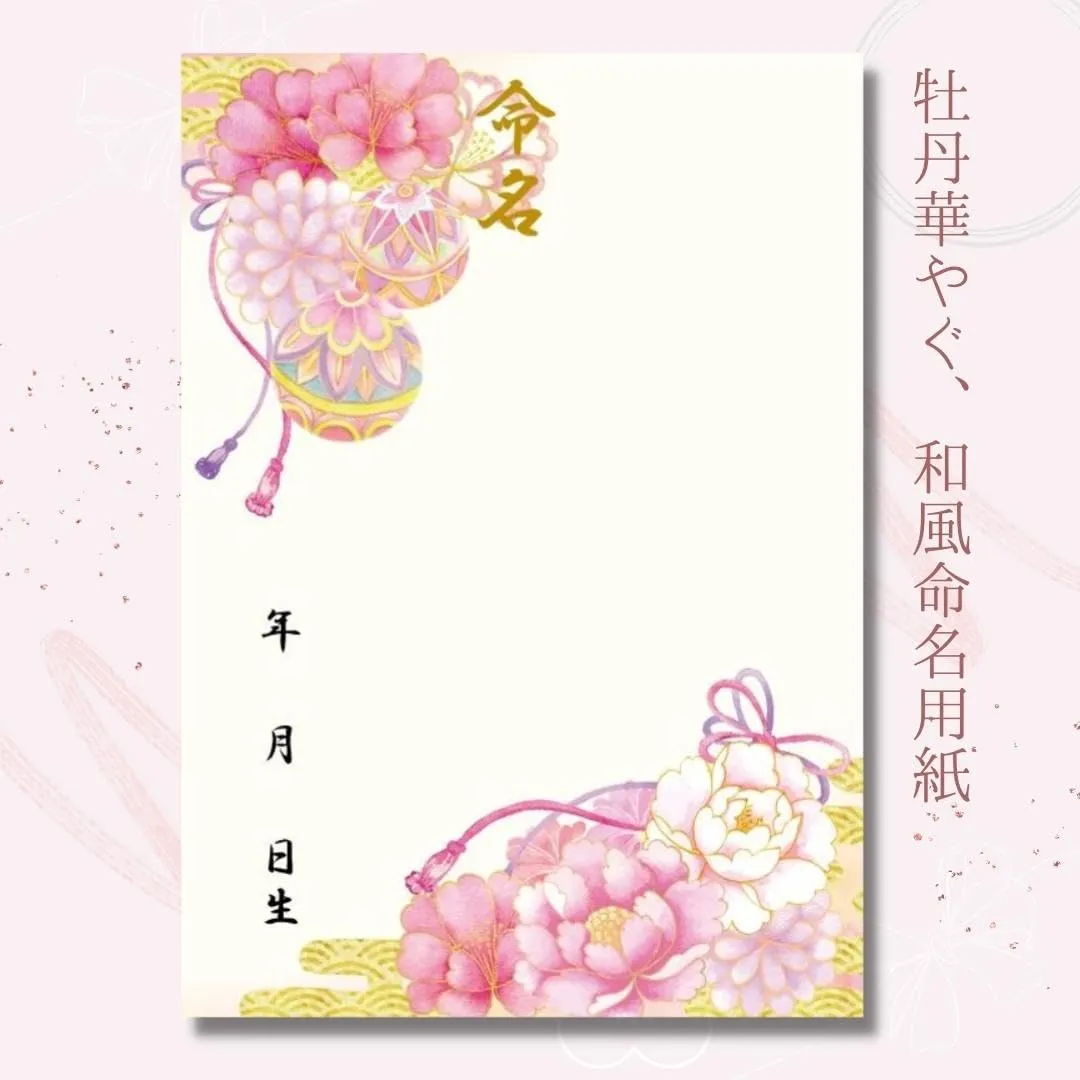 新品 【命名紙セット】A4和風命名用紙 2枚入り 華やか和柄 命名紙 命名式 お七夜 縁起の良い牡丹 出産祝い 軽量白額つき お七夜 命名式 令和6年生まれのお子様 命名書 日本製 MMS001-WH