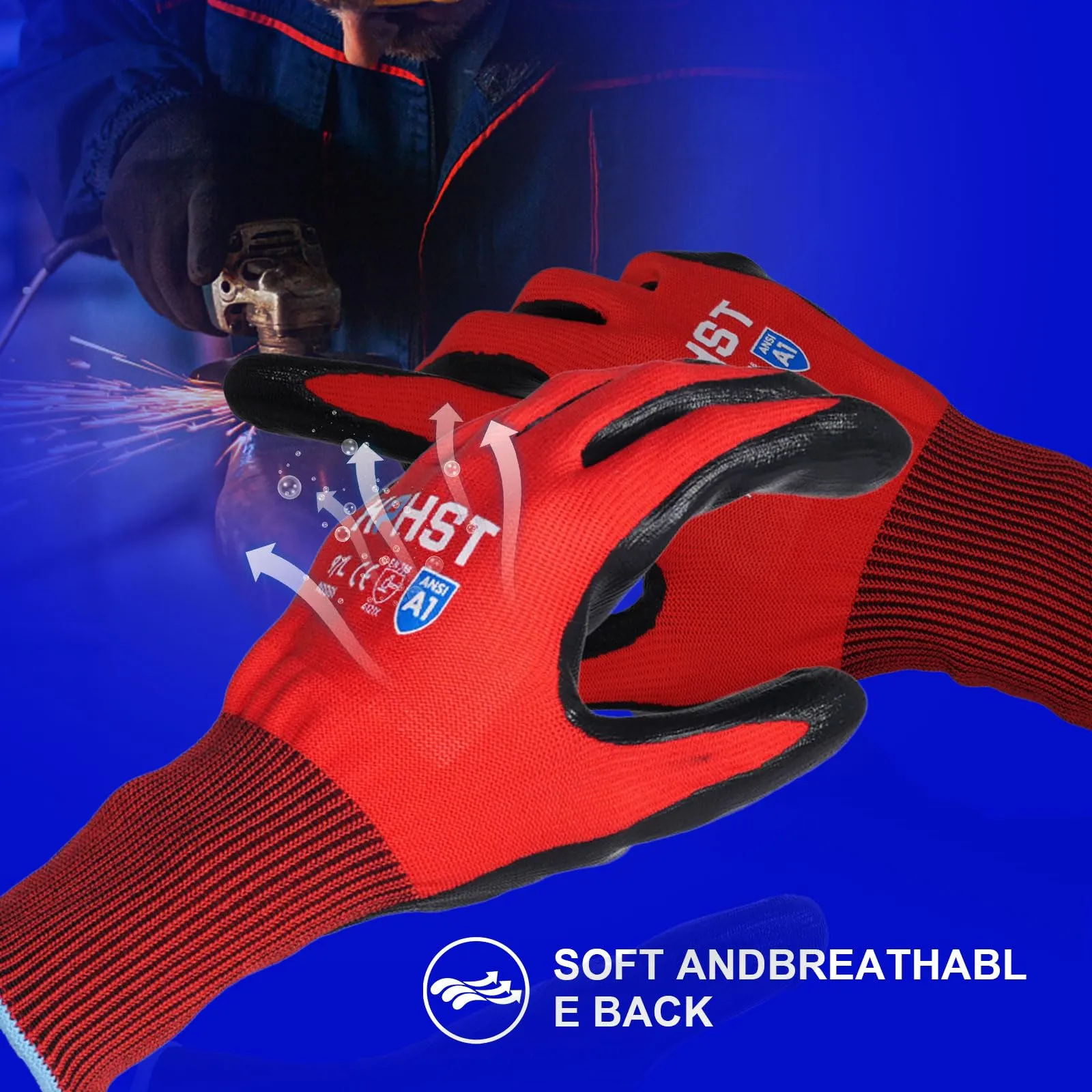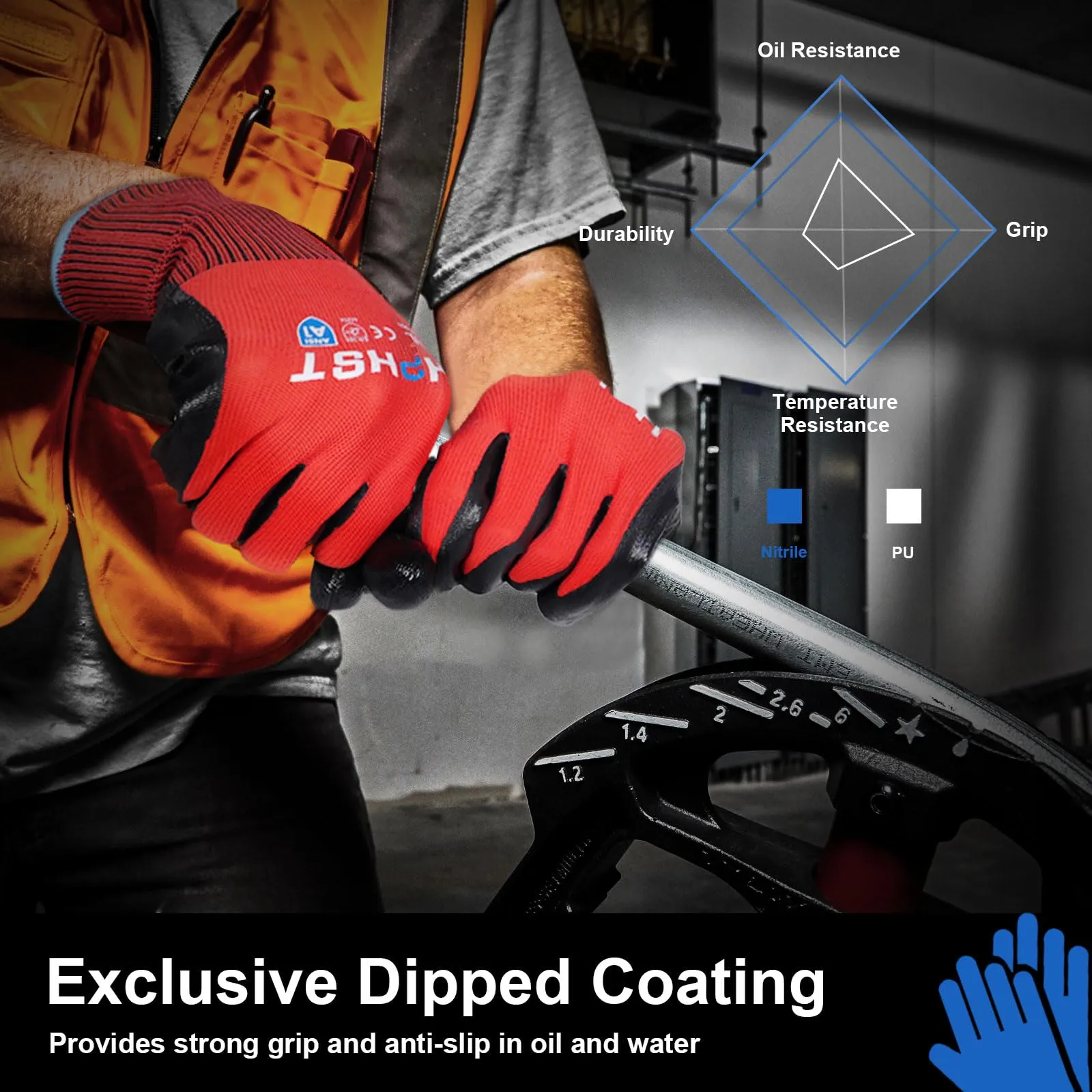 [HPHST] 安全作業手袋、ニトリルコーティング作業手袋 12副ニトリルグリップ男性作業手袋-機械、建築、園芸、木工用タッチパネル、滑り止め、耐油