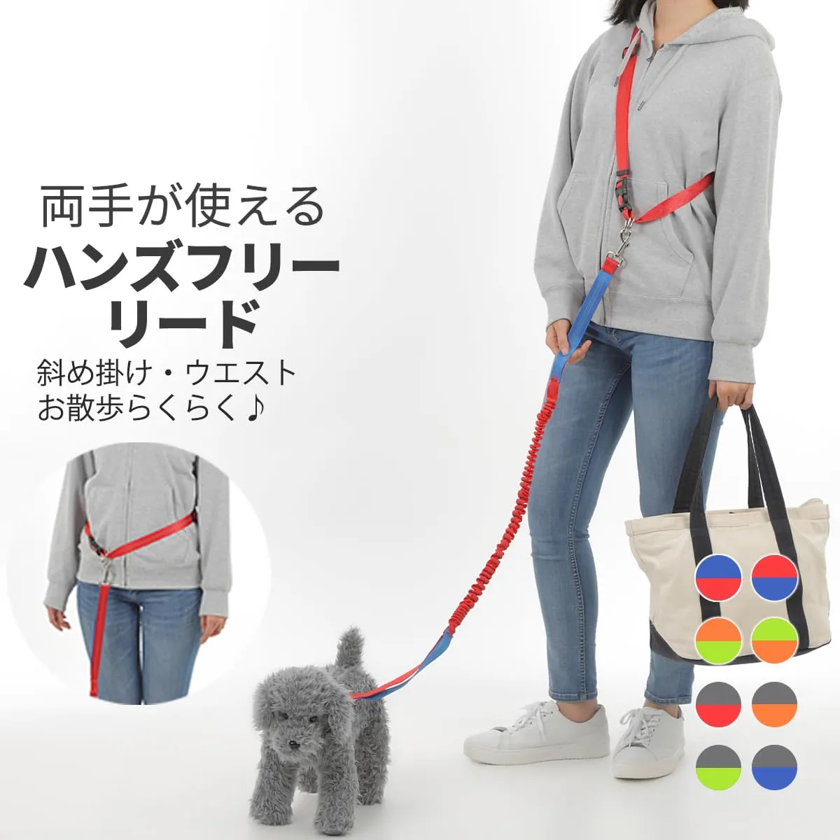 ショルダーリード 多機能 ハンズフリー リード 犬用 肩掛け 斜め掛け ウエスト 腰ベルト 伸縮 ランニングリード 散歩 ランニング ジョギング 腰巻け 便利 ななめ掛け (グレーオレンジ)