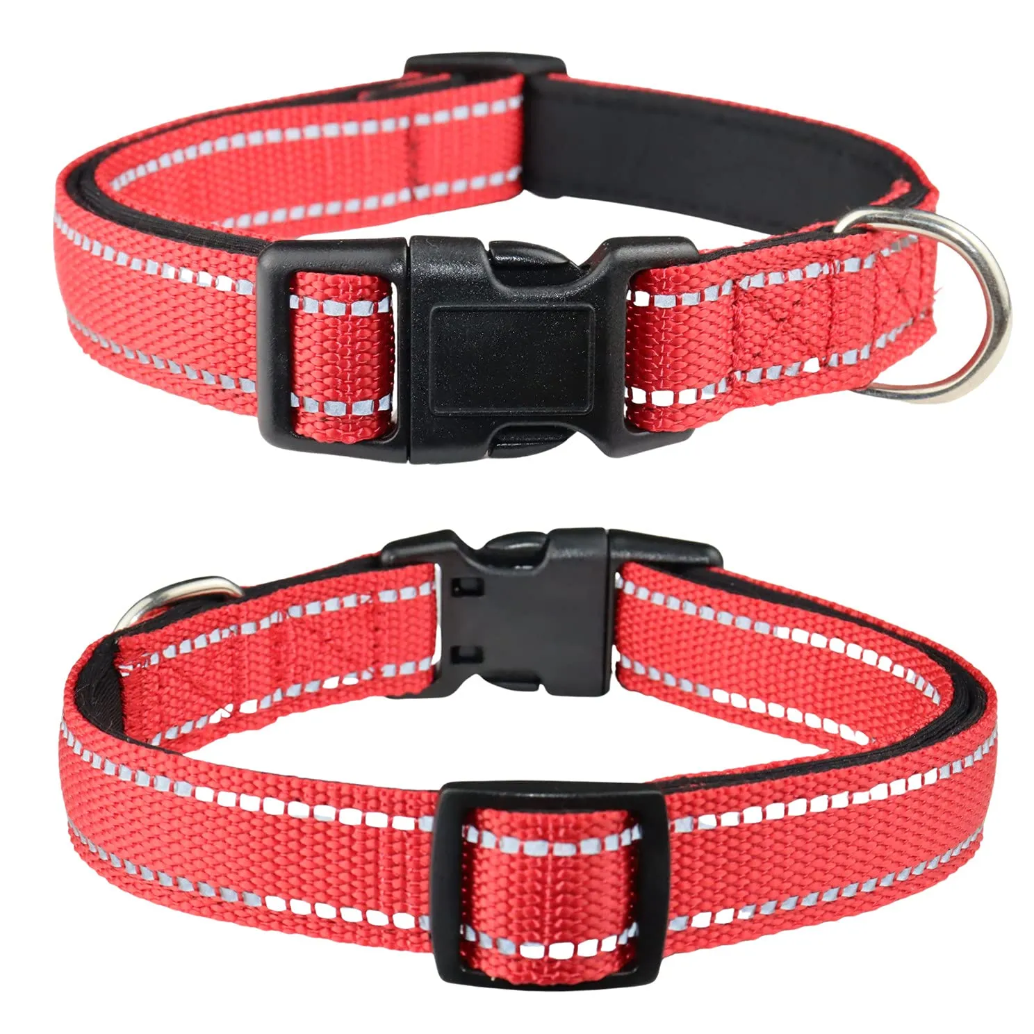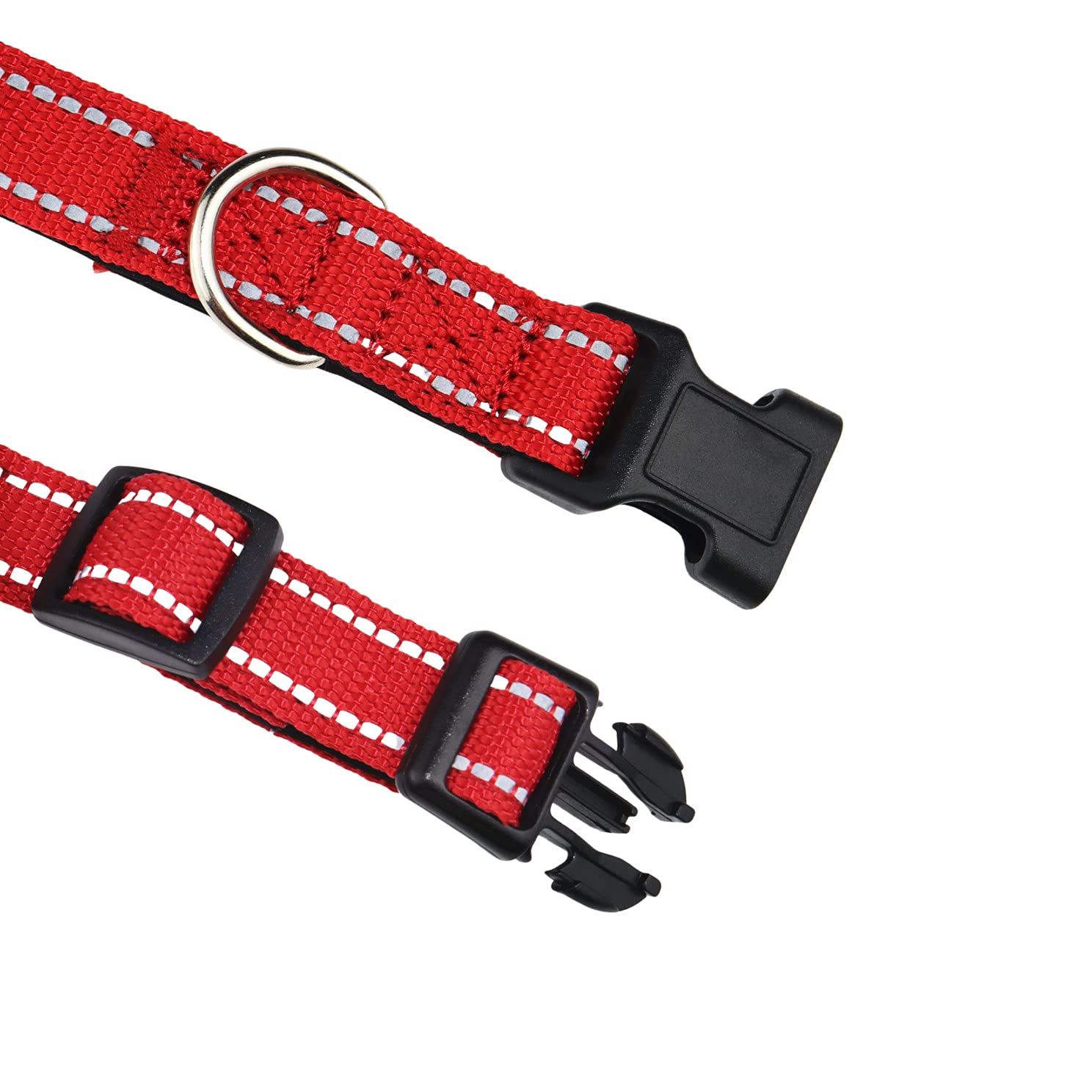 THAIN 犬 首輪 小型 軽量 子犬 首輪 ペット用品 反射材料 ナイロン製 通気性 弾力性 柔らかい 調節可能 (S, 赤)