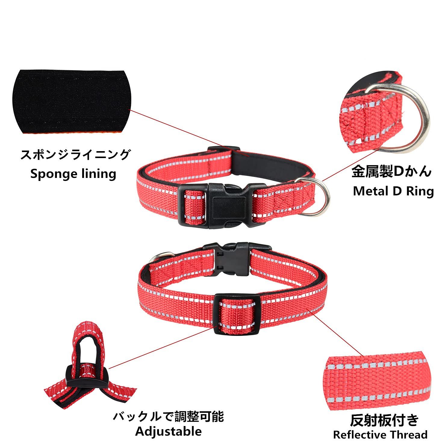 新品 THAIN 犬 首輪 小型 軽量 子犬 首輪 ペット用品 反射材料 ナイロン製 通気性 弾力性 柔らかい 調節可能 (S 赤)