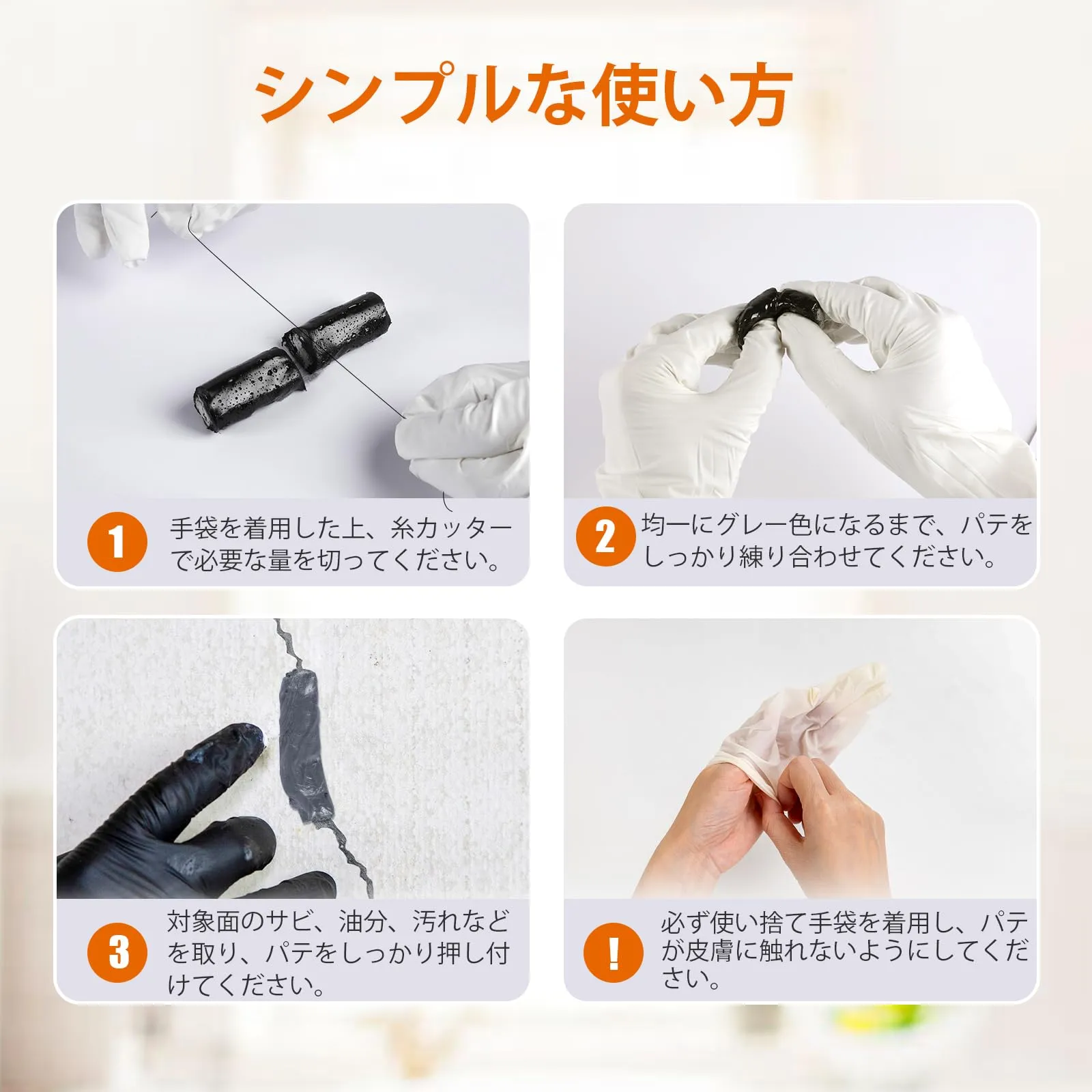 【利用シーン】パイプの水漏れ、金属の破損、ネジ穴の穴埋め,カップの補修。生活の中で、あらゆる種類の破損したものを簡単に修理することができます。