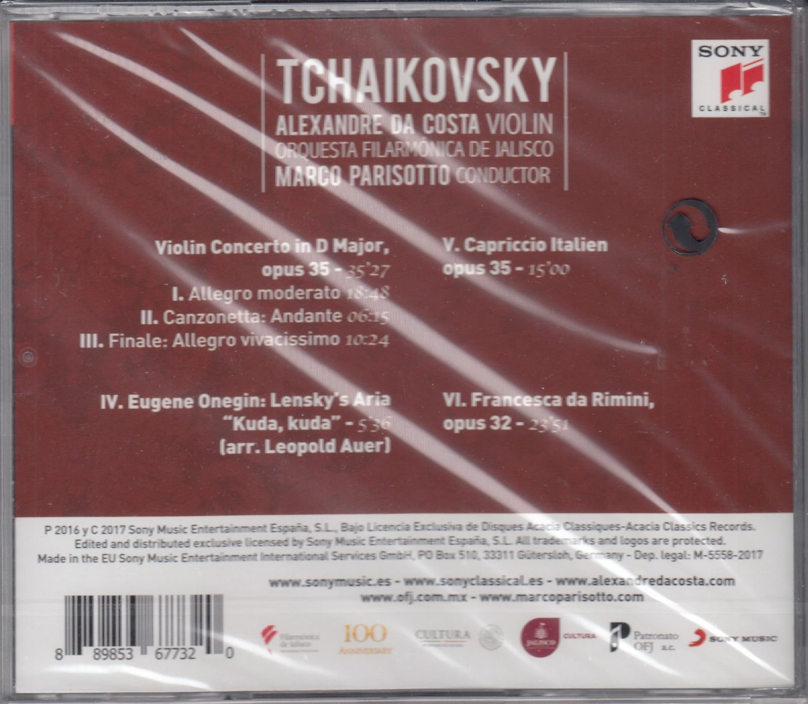 [CD/Sony]チャイコフスキー:ヴァイオリン協奏曲ニ長調Op.35&イタリア奇想曲Op.45&フランチェスカ・ダ・リミニOp.32他/アレクサンドレ・ダ・コスタ(vn)&マルコ・パリゾッティ&ハリスコ・フィルハーモニー管弦楽団 2016.6
