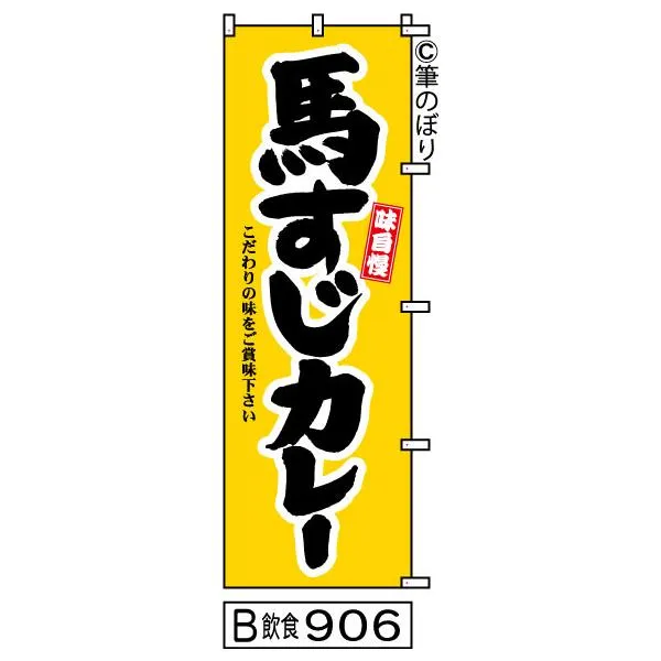 【お得な2枚セット-新品-送料無料】【キャンセル不可-12営業日で発送-ポスト投函】2枚組【馬すじカレー】のぼり旗|黄色に黒の目立つ手書き筆文字[906]
