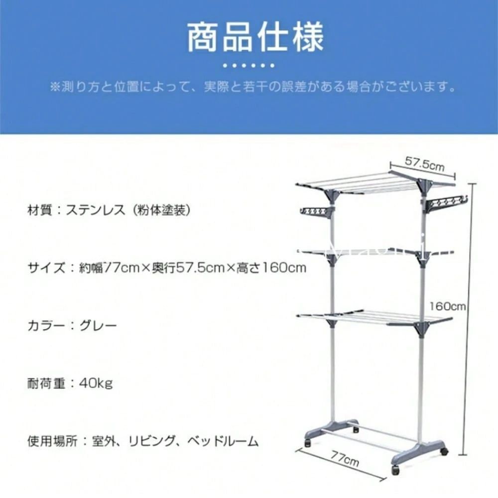 【仕様】 材質:ステンレス(粉体塗装) サイズ:約幅 77cm× 奥行 57.5cm× 高さ 160cm 耐荷重:40kg 使用場所:室外、リビング、ベッドルーム