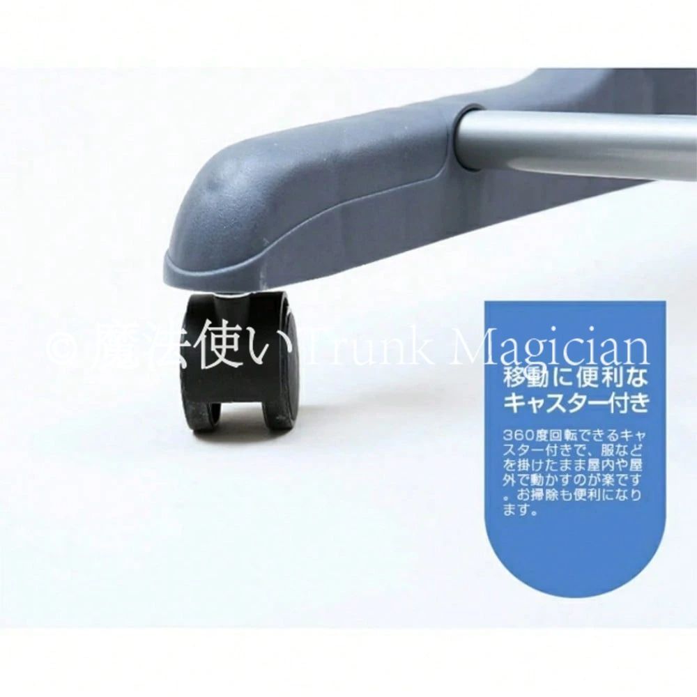 ●キャスター付き 360 度回転できるキャスター付きで、服などを掛けたまま屋内や屋外で動かすのが楽々、お掃除も便利になります。