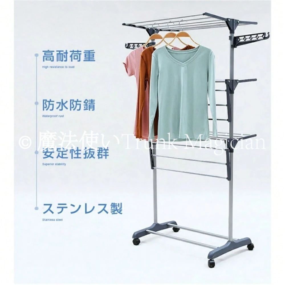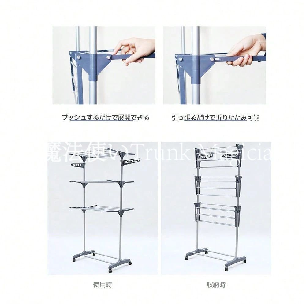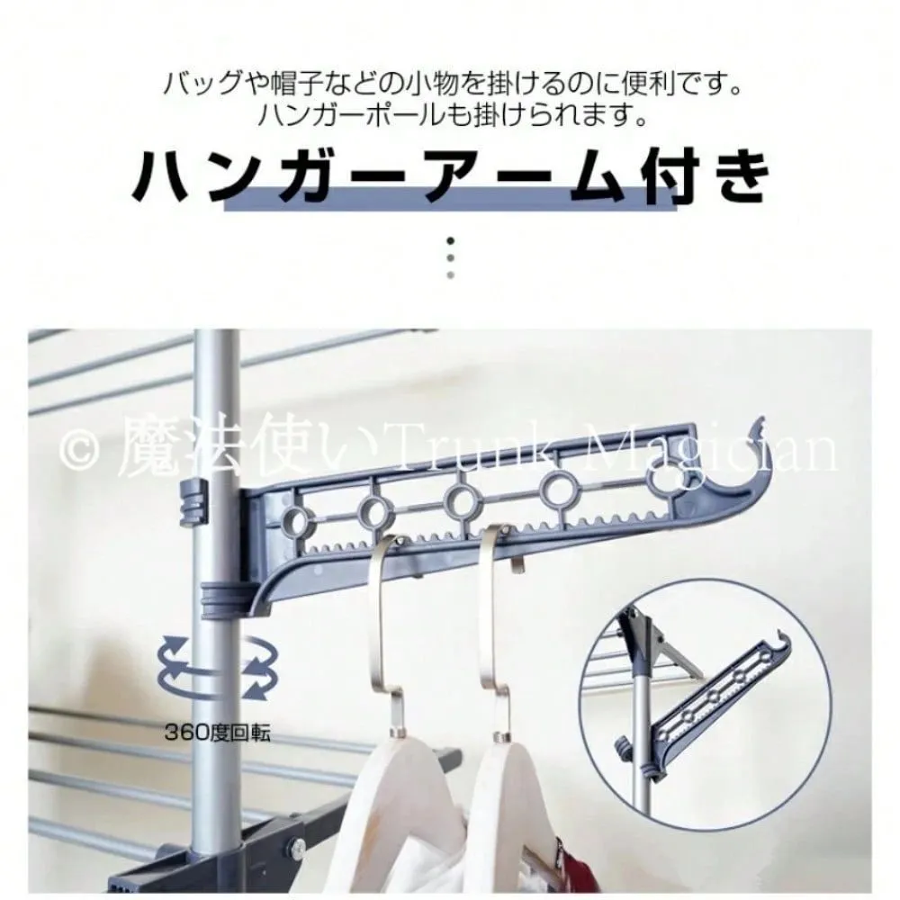 ●省スペース&簡単組立 省スペースでも効率的に洗濯物を干せる。女性一人でも簡単に組立できます。 シーン:ホーム,ベッドルーム,デイリー,日用品,玄関,部屋 素材:鉄 送料について ・全国送料無料(以下の地域を除く) ・沖縄県、離島地域には別途2,800円の送料がかかります。 ・上記の地域には、商品ページにて別途送料を請求させていただきます。 ご注意事項: ※サイズは手作業での採寸のため、1?3cm程度の誤差が生じる場合がございます。 ※モニター環境や撮影時の光加減により、実際の商品の色味が画像と若干異なる場合がございます。 ※生産工程上、ごくわずかな縫製のズレや糸のほつれ・匂いなどが見られる場合がございますが、品質には問題ございません。 ※イメージ違いによる返品・交換はご遠慮いただきますようお願い申し上げます。
