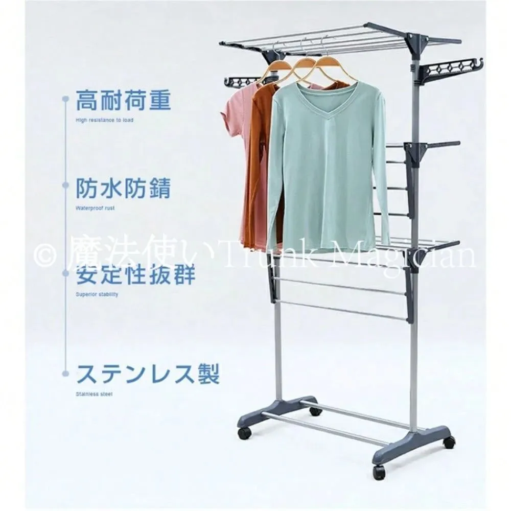 【特価】人気商品★物干し 室内 物干しスタンド ハンガーラック 衣類収納 洗濯物干し 多機能 バスタオル 部屋干し コート掛け 衣類掛け ハンガー掛け キャスター付きCZH122P002