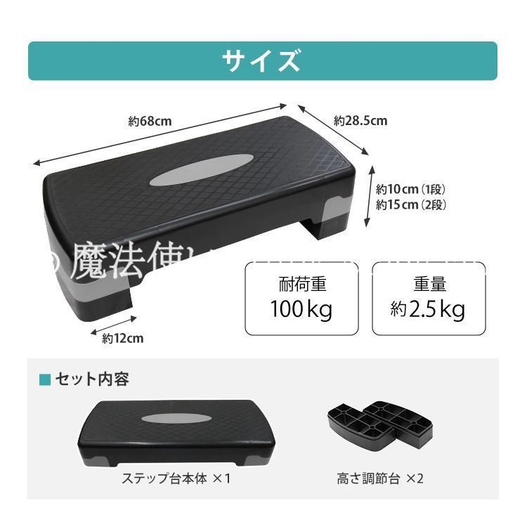 【商品仕様】 本体サイズ(約):幅68cm×奥行き28.5cm×高さ10cm/15cm(二段階調節) ※未使用時は調節台をコンパクトに収納可能 重量(約):2.5kg 素材:PP(ポリプロピレン) 耐荷重(約):100kg (ステッパー 健康器具 フィットネス ジム 有酸素運動 昇降運動 上下運動 母の日 父の日 プレゼント ギフト 送料無料 人気 安い おすすめ 敬老の日)