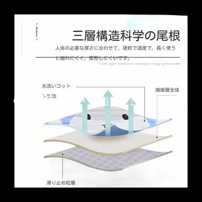 ■ 3層構造デザイン ?表面:洗浄済み綿生地 ?中間層:綿糸充填 ?底面:滑り止め加工層 耐久性に優れた構造です
