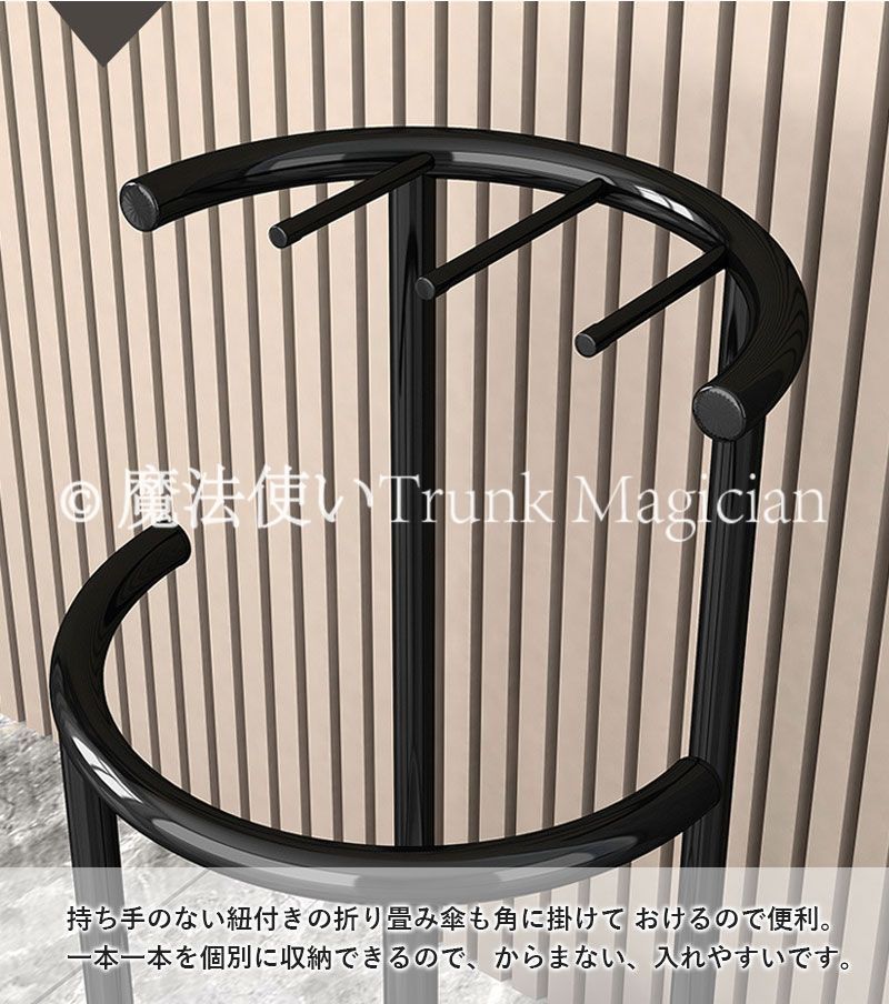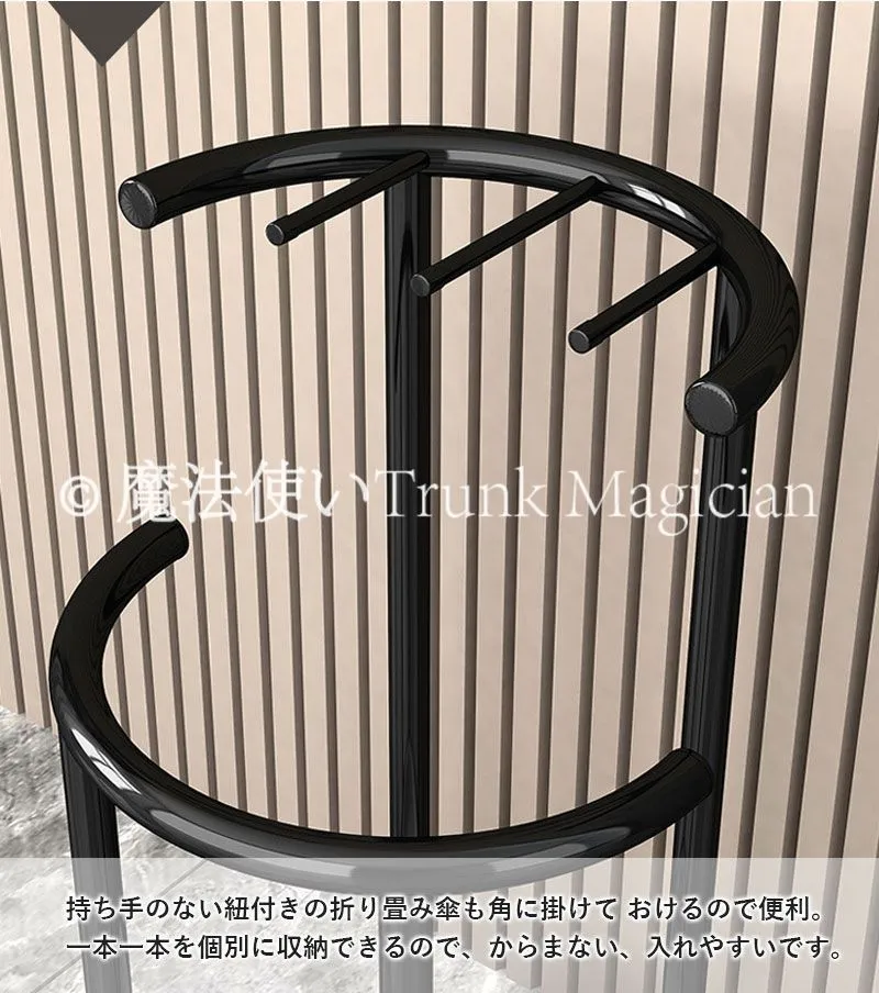 【折り畳み傘兼用】折りたたみ傘はフックに引っ掛けて収納ができる。一本一本を個別に収納できるので、からまない、入れやすい、ストレスが少ない傘立て。