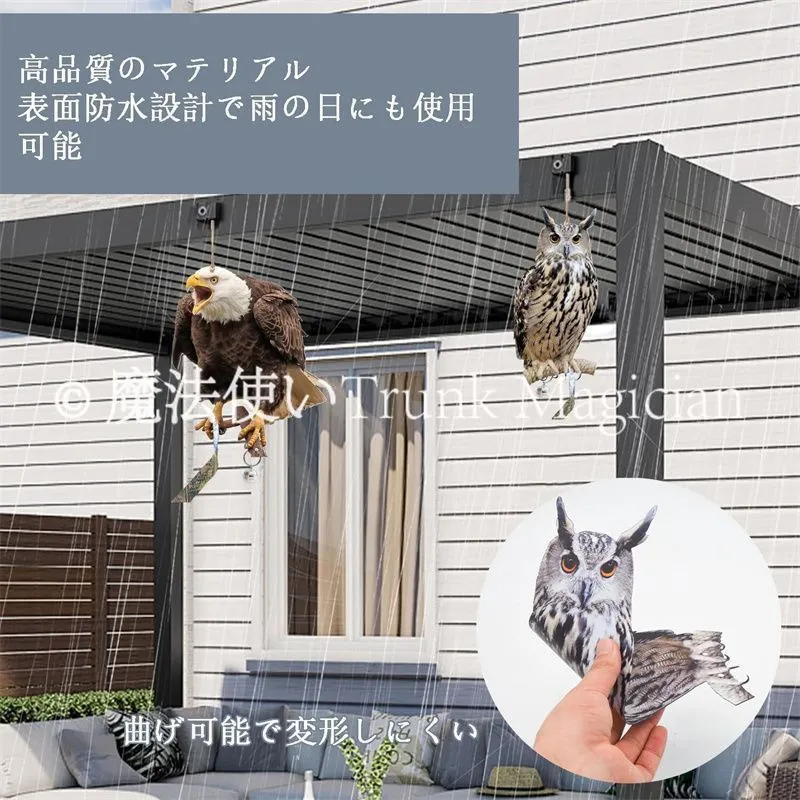 【模様にて鳥よけ】鳩などの鳥たちが天敵のフクロウを怖がる特徴に基づいて、本製品は猛禽類のフクロウを模して目がイキイキでキラキラしていて、鳩などの鳥が怖がって寄り付けません。